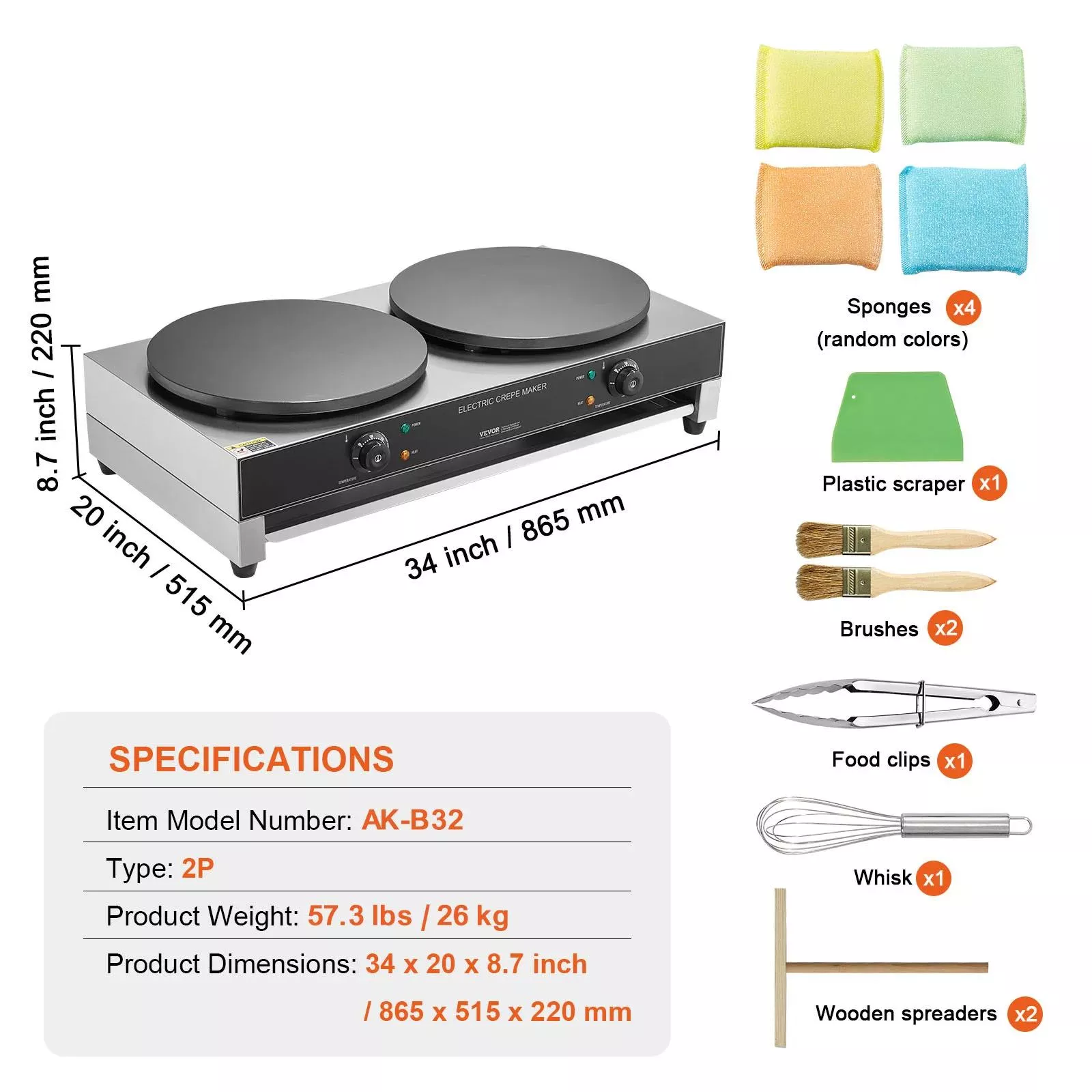 Whether you’re a pro chef or a passionate home cook, this double-head electric crepe maker delivers the tools you need to serve crowd-pleasing treats with confidence. With its sleek design, commercial-grade performance, and effortless operation, it’s the ultimate machine for taking your breakfast or dessert game to the next level.