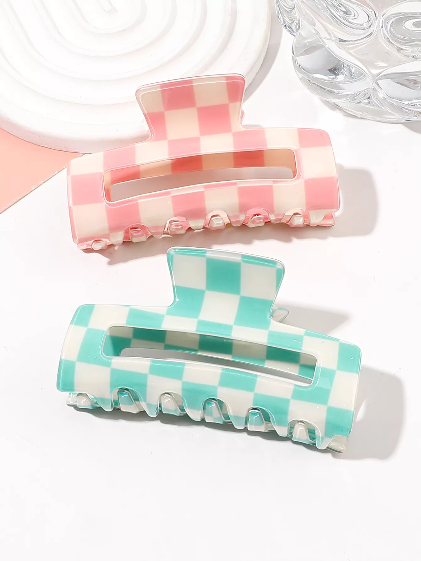 2 Pcs Checkered Hair Claw Clips for Thin or Thick Hair – Y2K Acetate Style