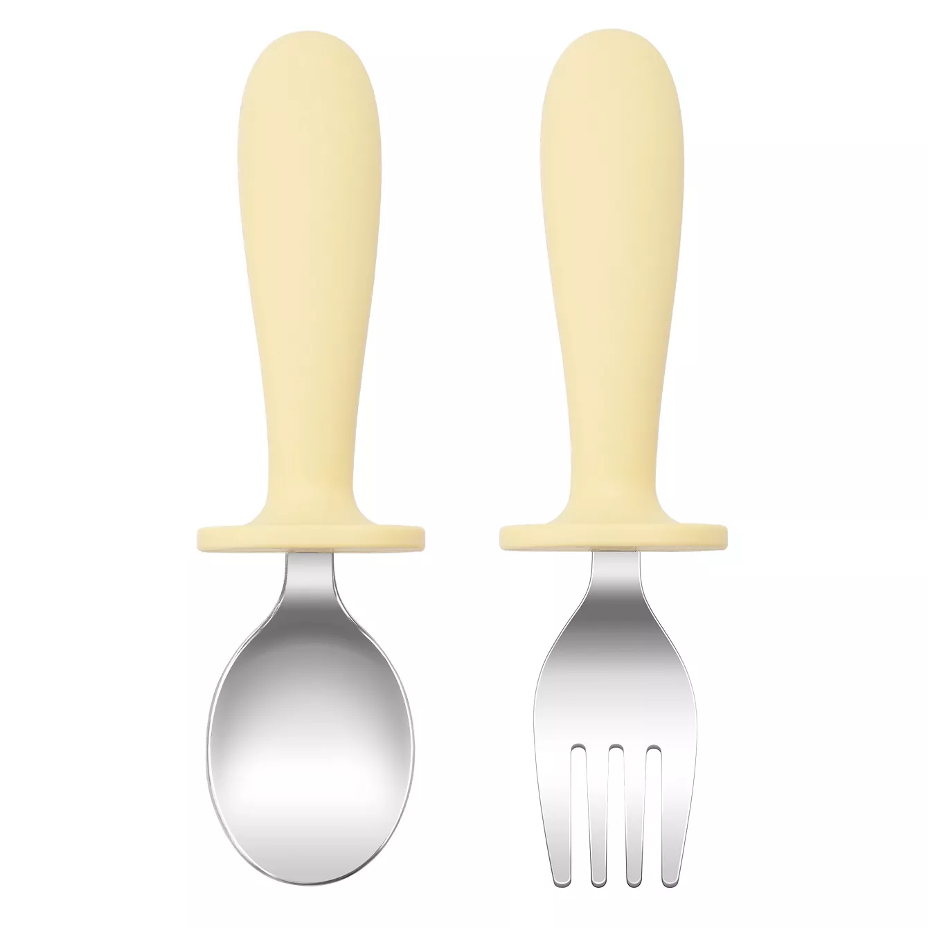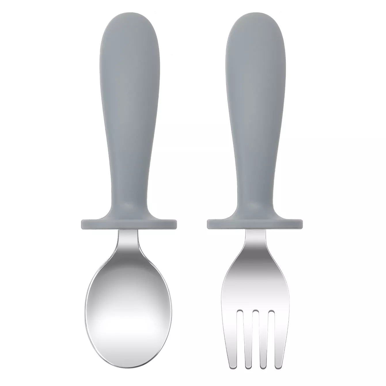 Mealtime just got easier—and a lot more fun! This 2-piece stainless steel baby spoon and fork set is thoughtfully designed for babies and toddlers who are learning to eat independently. Made from food-grade stainless steel and soft, baby-safe silicone handles, these utensils are perfectly sized for tiny hands and gentle on delicate gums. Whether your baby is starting solids or your toddler is exploring self-feeding, this set is your go-to feeding essential.