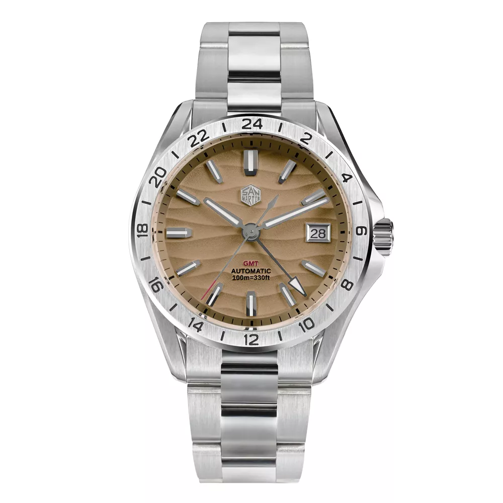 39mm Luxury GMT Watch for Men with Desert Texture Dial – Automatic, Waterproof, Luminous