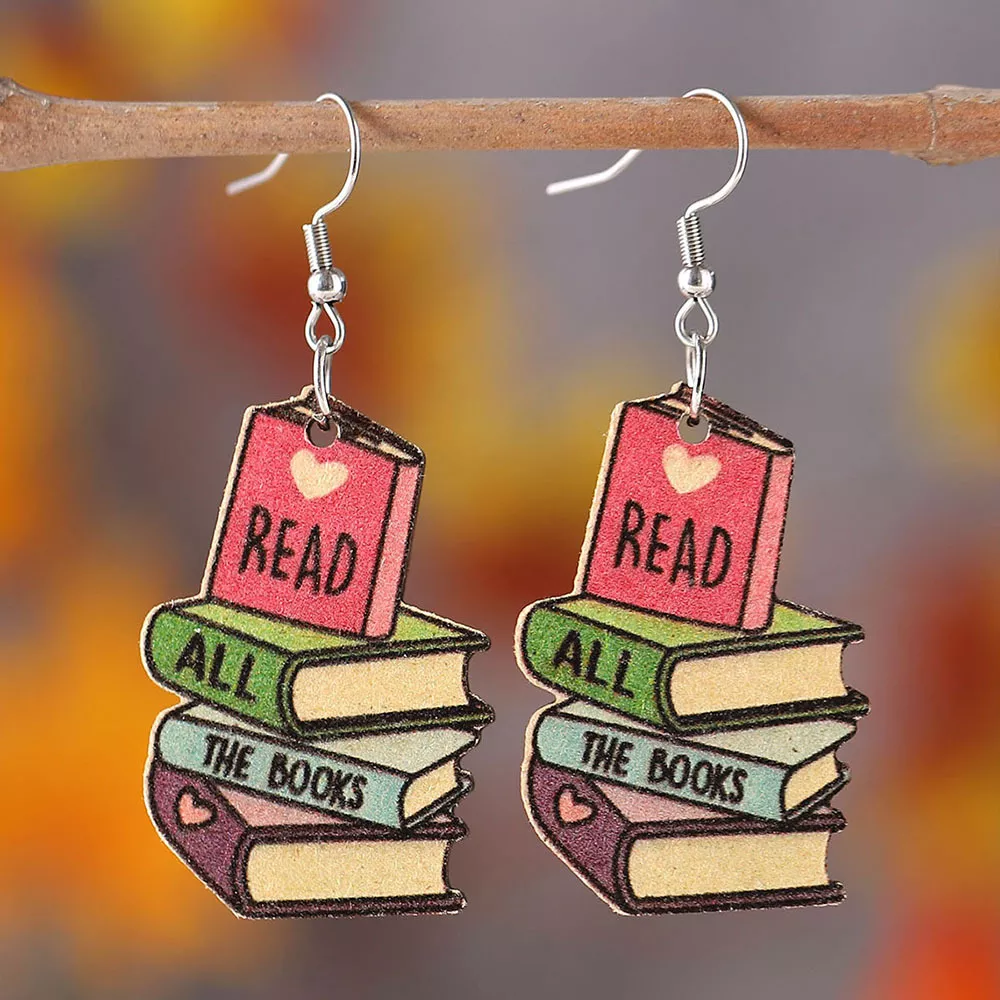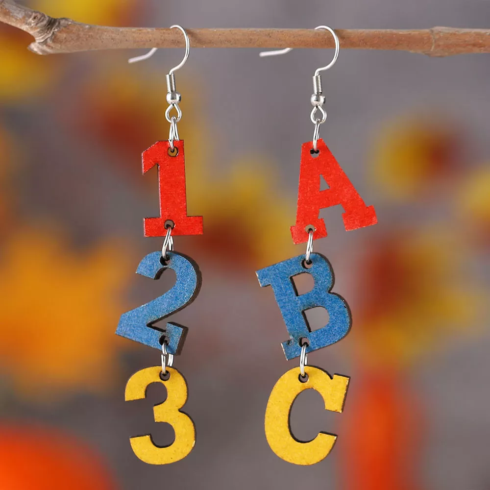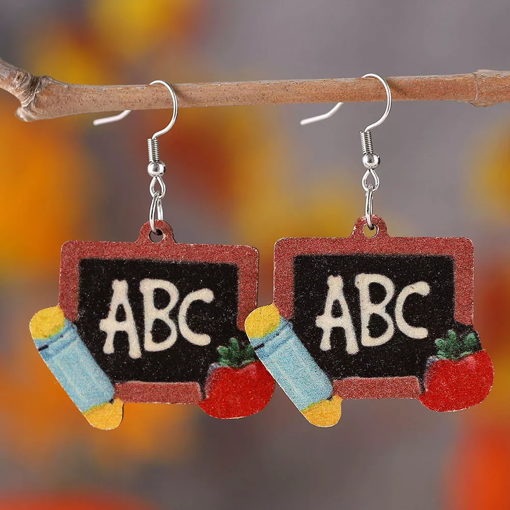 Each earring showcases a mini 3D apple and textbook motif, painted in vibrant colors on double-sided wood for a standout effect. Accented with letters, numbers, and pencil details, these drop earrings capture the essence of learning and creativity. Lightweight and trendy, they make a thoughtful gift for any educator or a fun addition to your own back-to-school wardrobe.