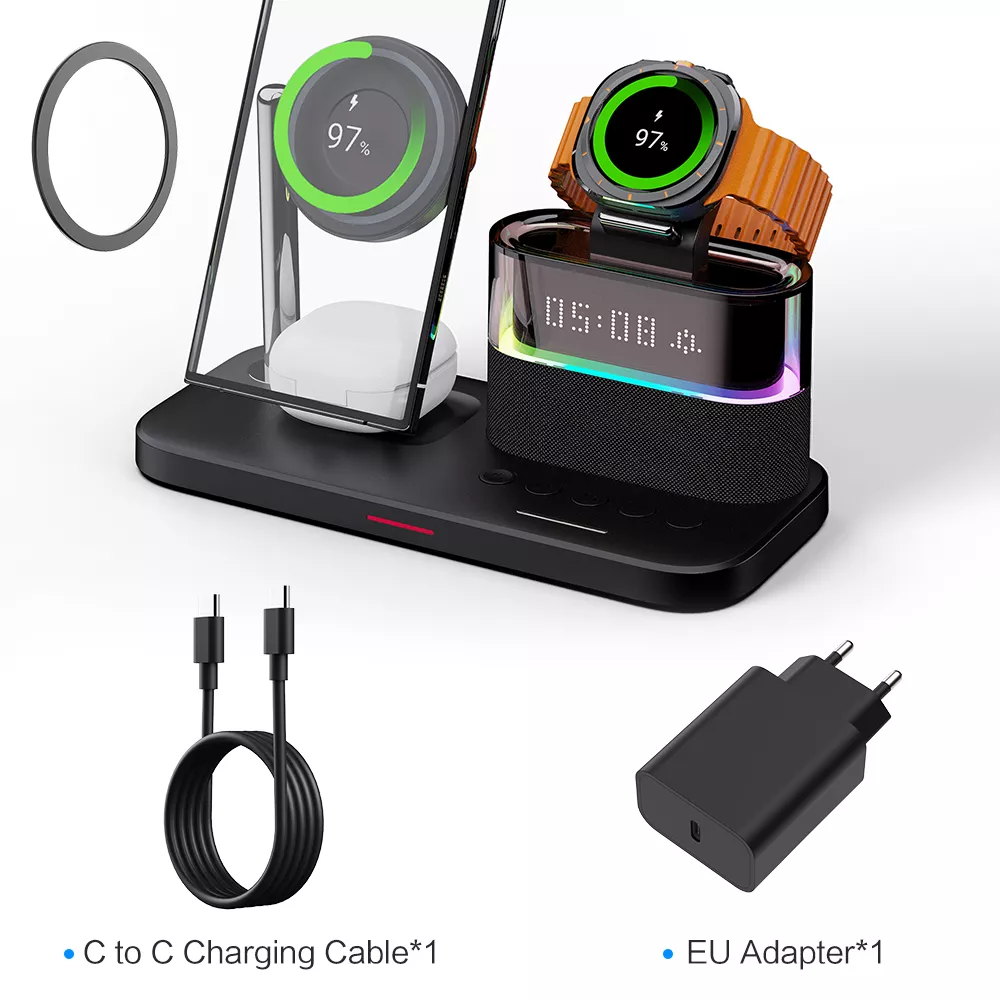 It’s more than just a charger. This station brings together power, organization, and practicality in a beautifully compact design. Its Type-C connector ensures efficient energy transfer, while the magnetic base keeps your devices secure and aligned for optimal performance. Certified by CE and RoHS, you can trust it’s made with safety and quality in mind.