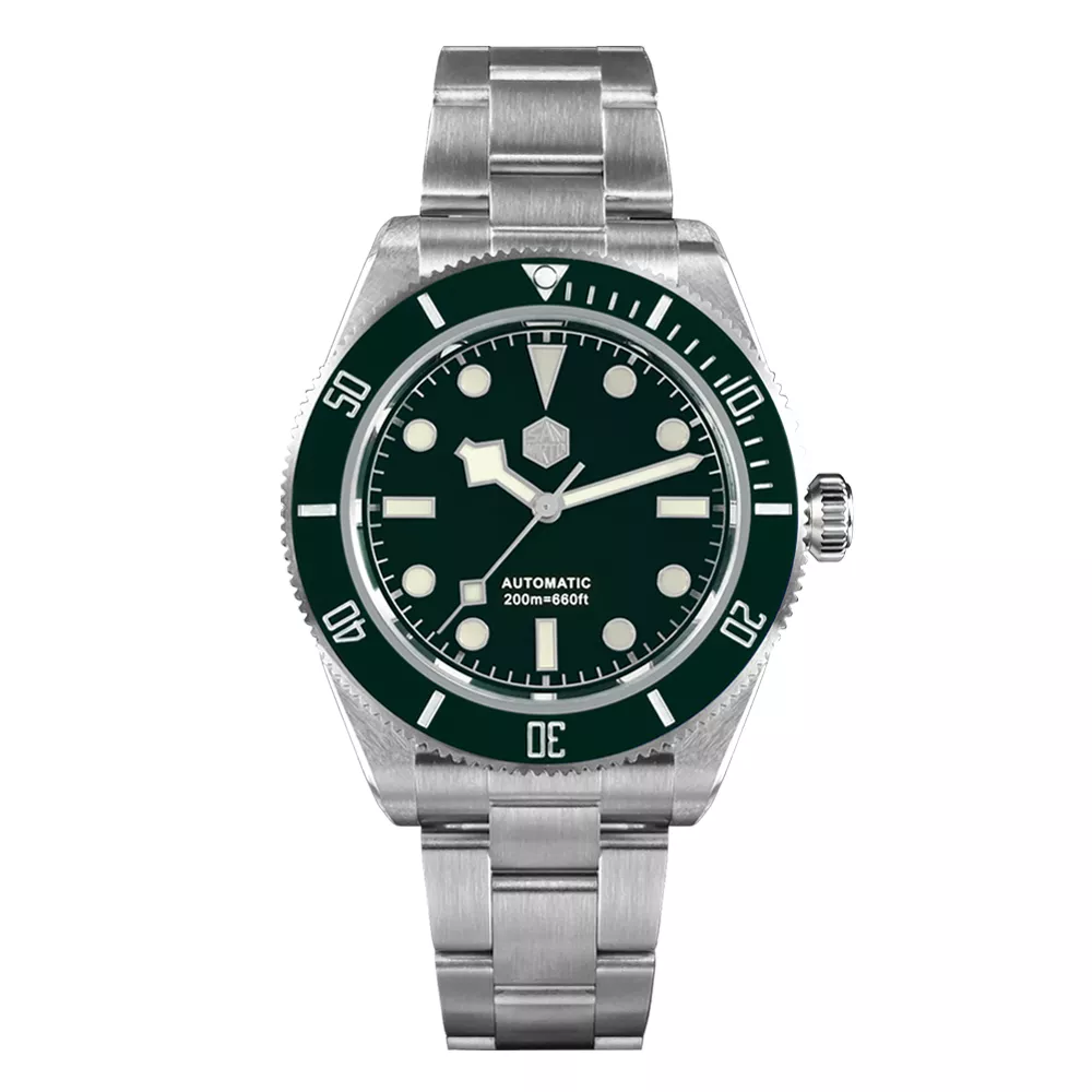 Step into a world of precision and elegance with this 40mm vintage-inspired automatic diver watch. Built for those who appreciate classic design with modern durability, this timepiece is more than just a watch—it’s a statement. Featuring a striking matte green dial paired with luminous snowflake hands, this piece effortlessly blends heritage style with cutting-edge technology. Whether you’re heading into the office, exploring the outdoors, or diving below the waves, this watch is ready for every moment.