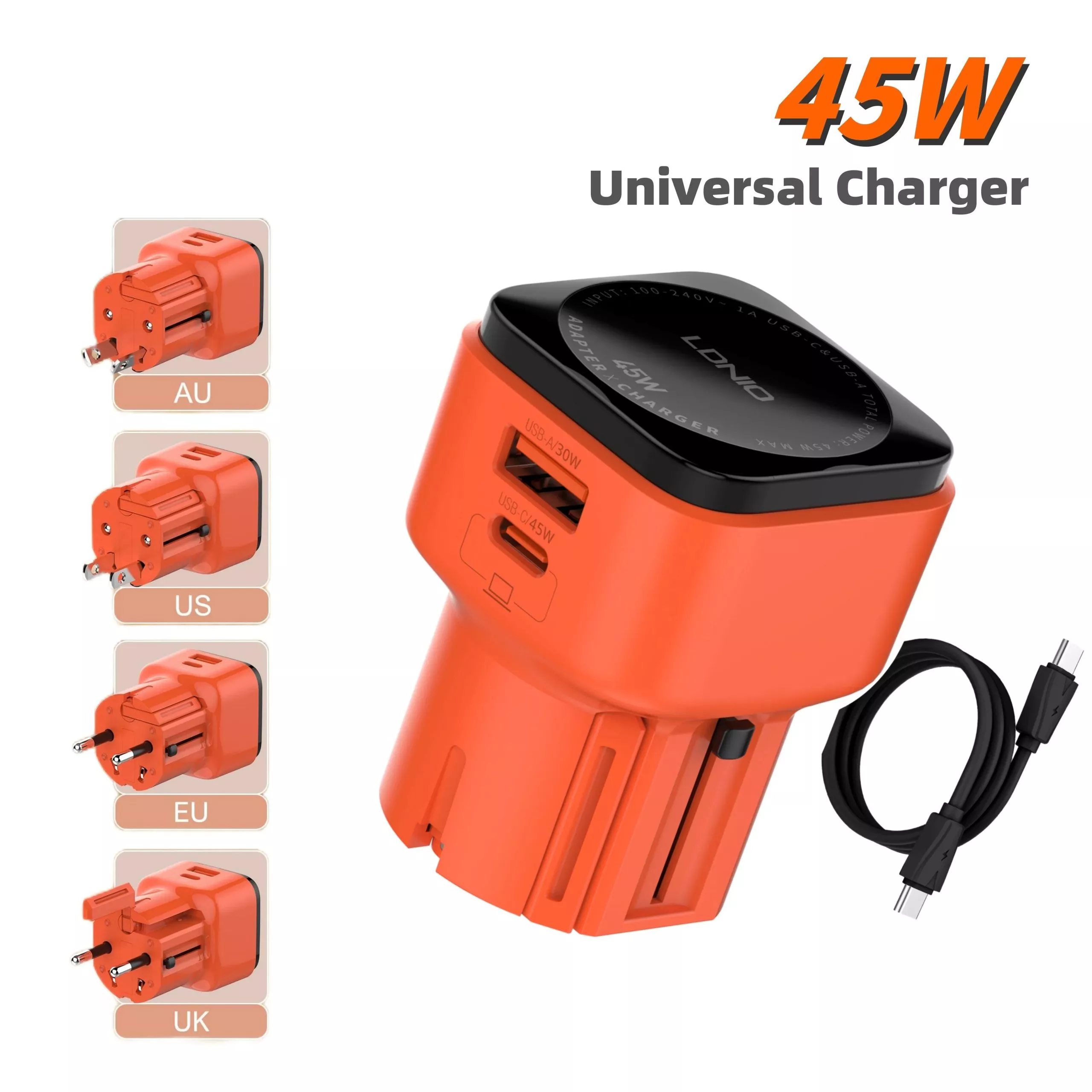 Say goodbye to bulky adapters and slow charging. This sleek and compact 45W Turbo Travel Charger is your all-in-one solution for charging all your devices—wherever your journey takes you. Whether you’re in New York, London, Sydney, or Tokyo, this universal adapter supports US, UK, EU, and AU plug types, making it your perfect global travel companion.
