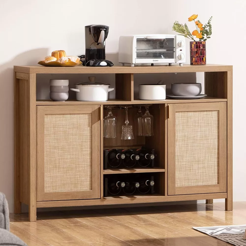 This cabinet is ideal for everyday organization or entertaining guests. Use it as a bar cabinet during dinner parties, a sideboard for your dining room essentials, or a coffee bar for cozy mornings. The versatile design makes it easy to blend into different rooms and styles, while the natural materials keep your home feeling relaxed and inviting.