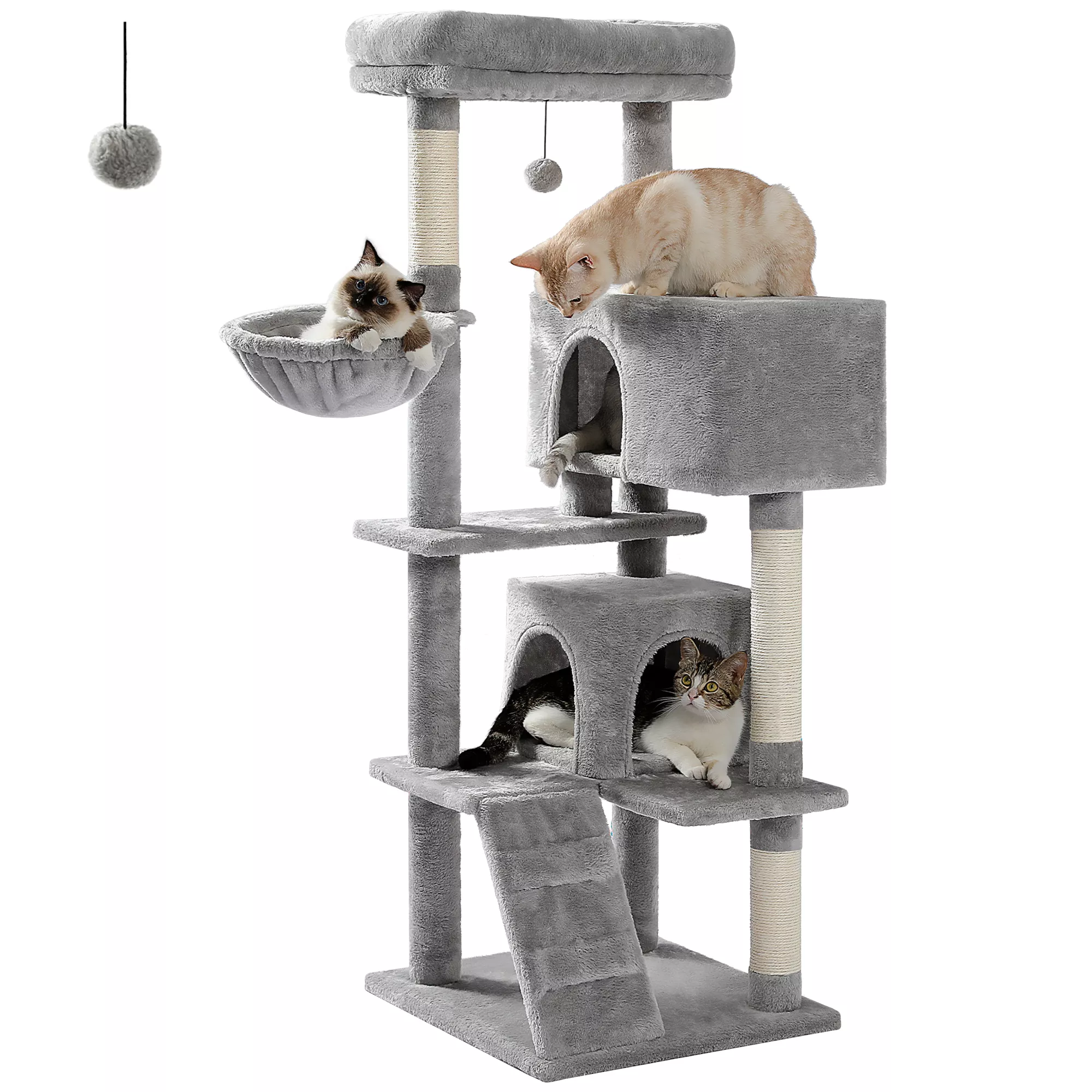56.3″ Cat Tree Tower for Large Cats with Hammock, Condos, Scratching Posts