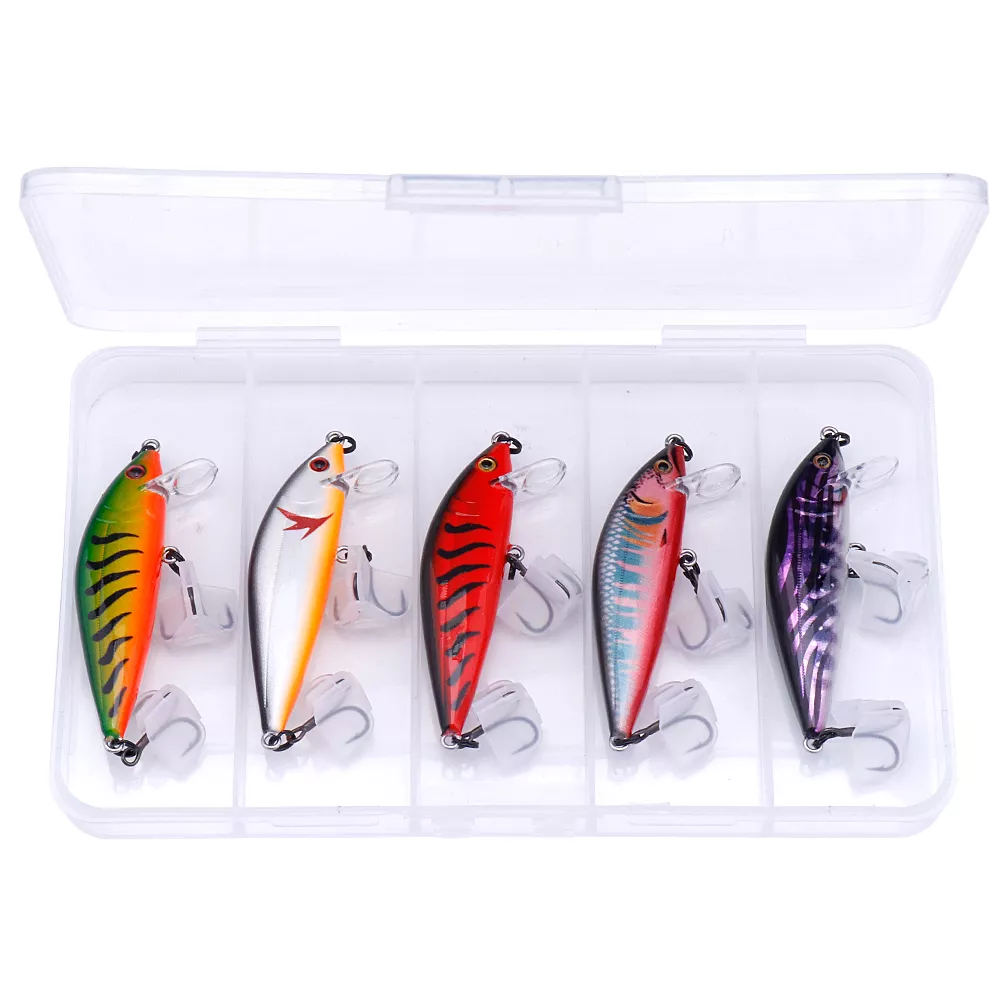Get ready to elevate your fishing game with this 5-piece Minnow Fishing Lure Set. Each lure in the kit is designed to mimic real fish with astonishing detail — thanks to lifelike 3D eyes, vibrant patterns, and a holographic finish that reflects light just like a live baitfish. Whether you’re fishing in freshwater or saltwater, these slow-sinking crankbaits deliver irresistible motion that drives game fish wild.