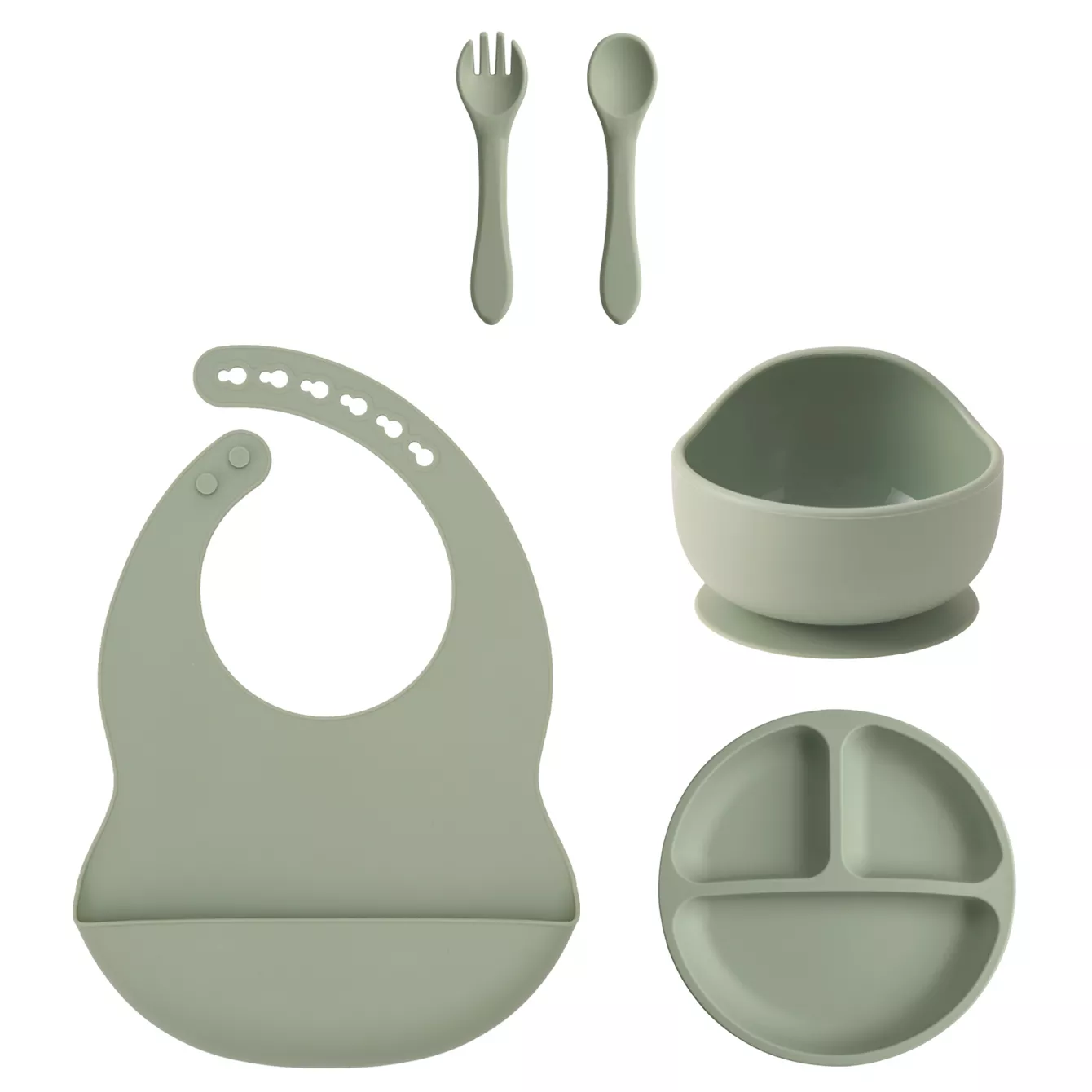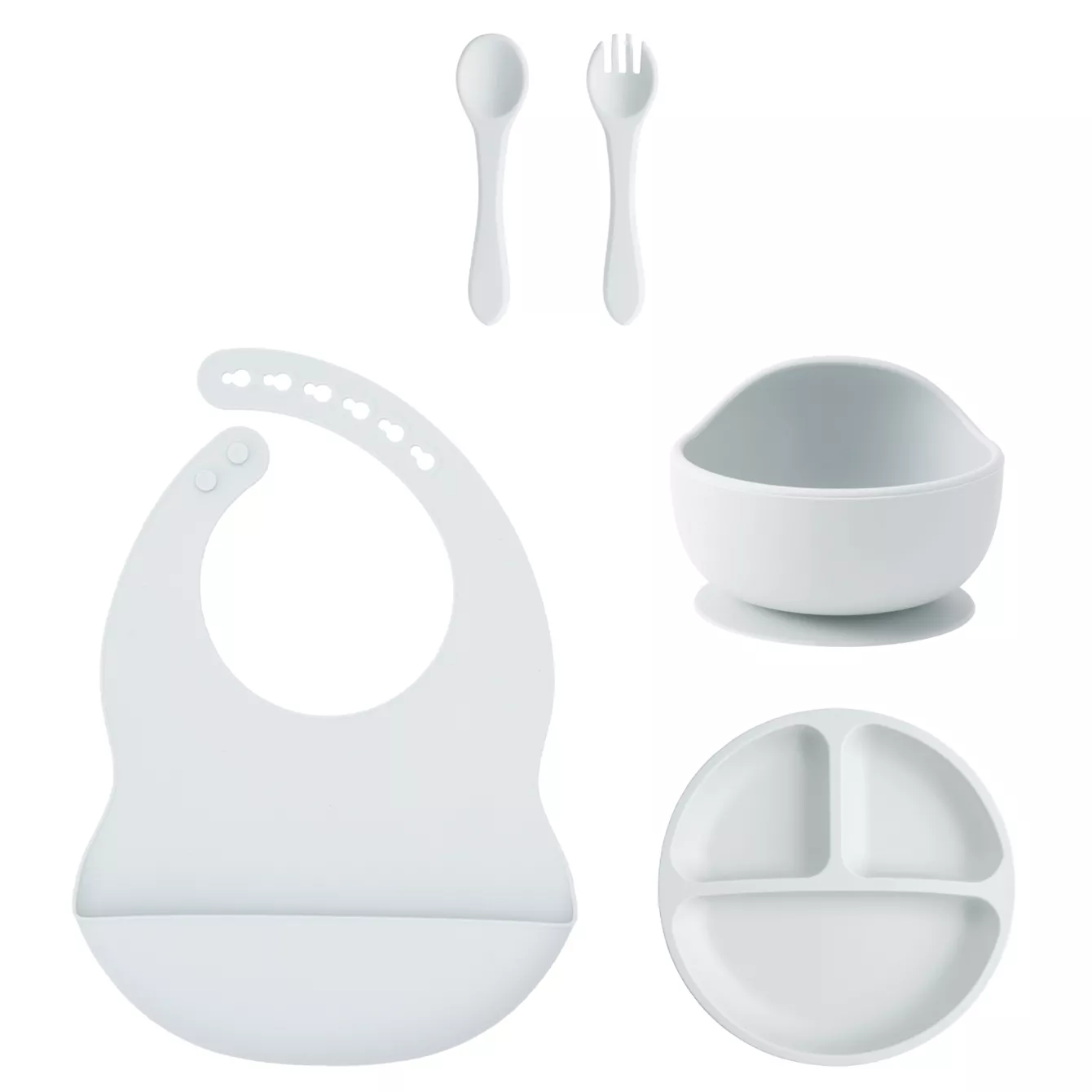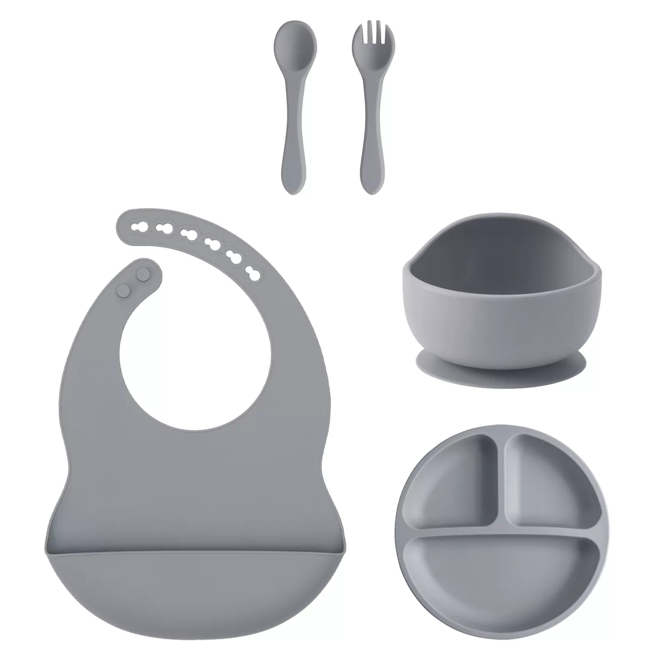• 5-piece complete set: Includes suction bowl, plate, bib, spoon, and fork
