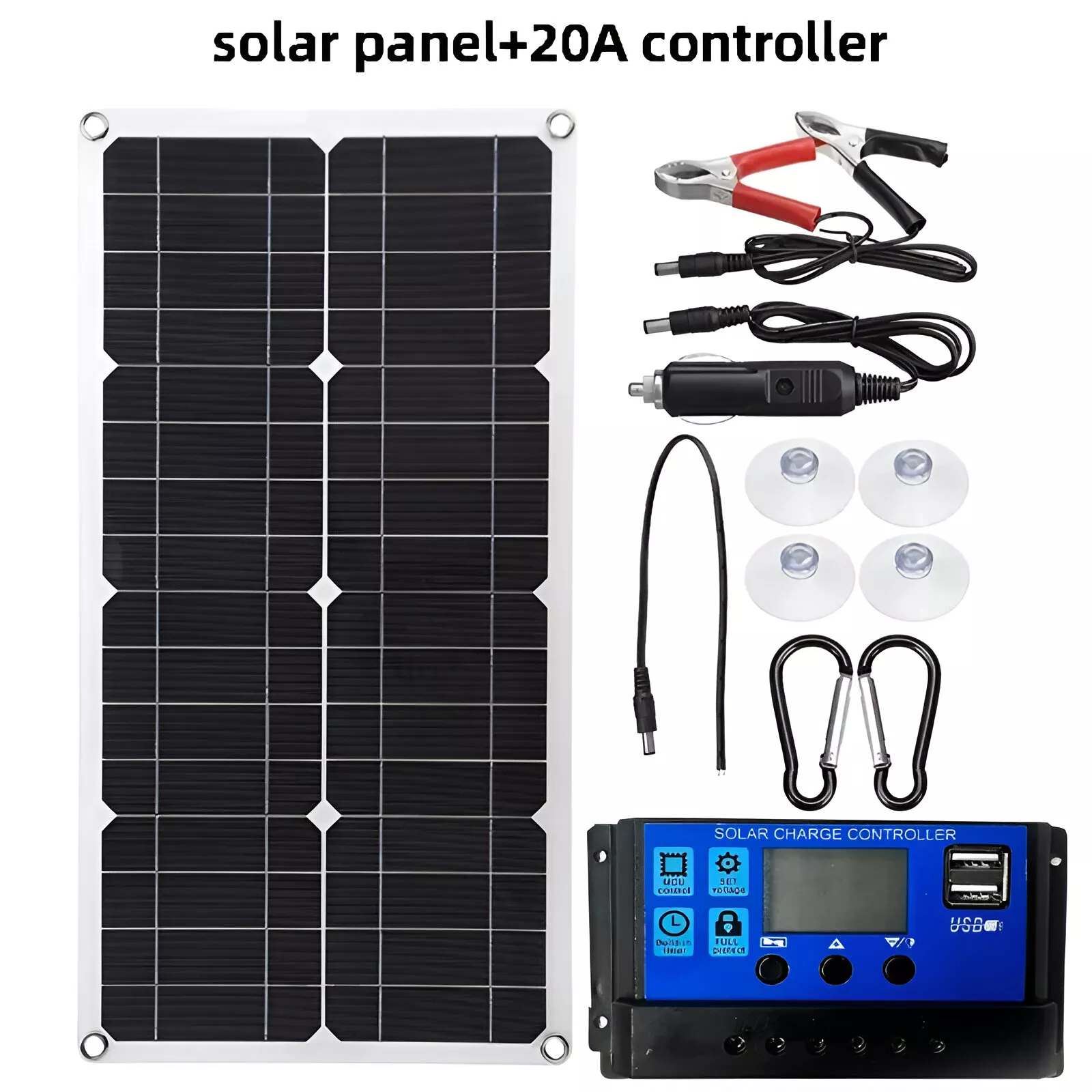 600W Flexible Solar Panel Charger with Dual USB & 12V DC for Car RV Battery