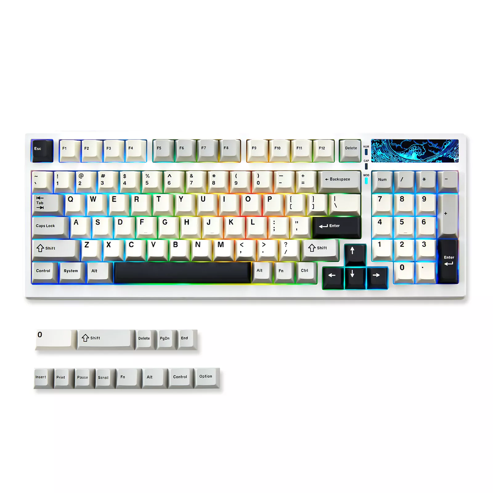 This keyboard combines modern wireless freedom with pro-level customization. Thanks to tri-mode connectivity—Bluetooth 5.0, 2.4G wireless, and Type-C wired—you can easily switch between multiple devices including PCs, laptops, tablets, and smartphones. The massive 5000mAh battery keeps you connected for longer, and the south-facing RGB with side lighting adds visual flair that shines, day or night.