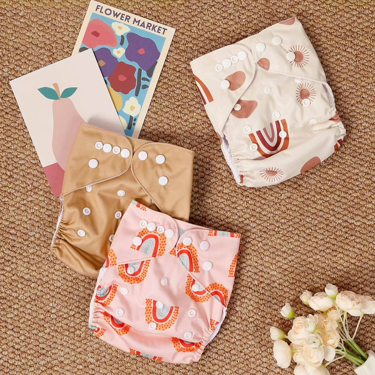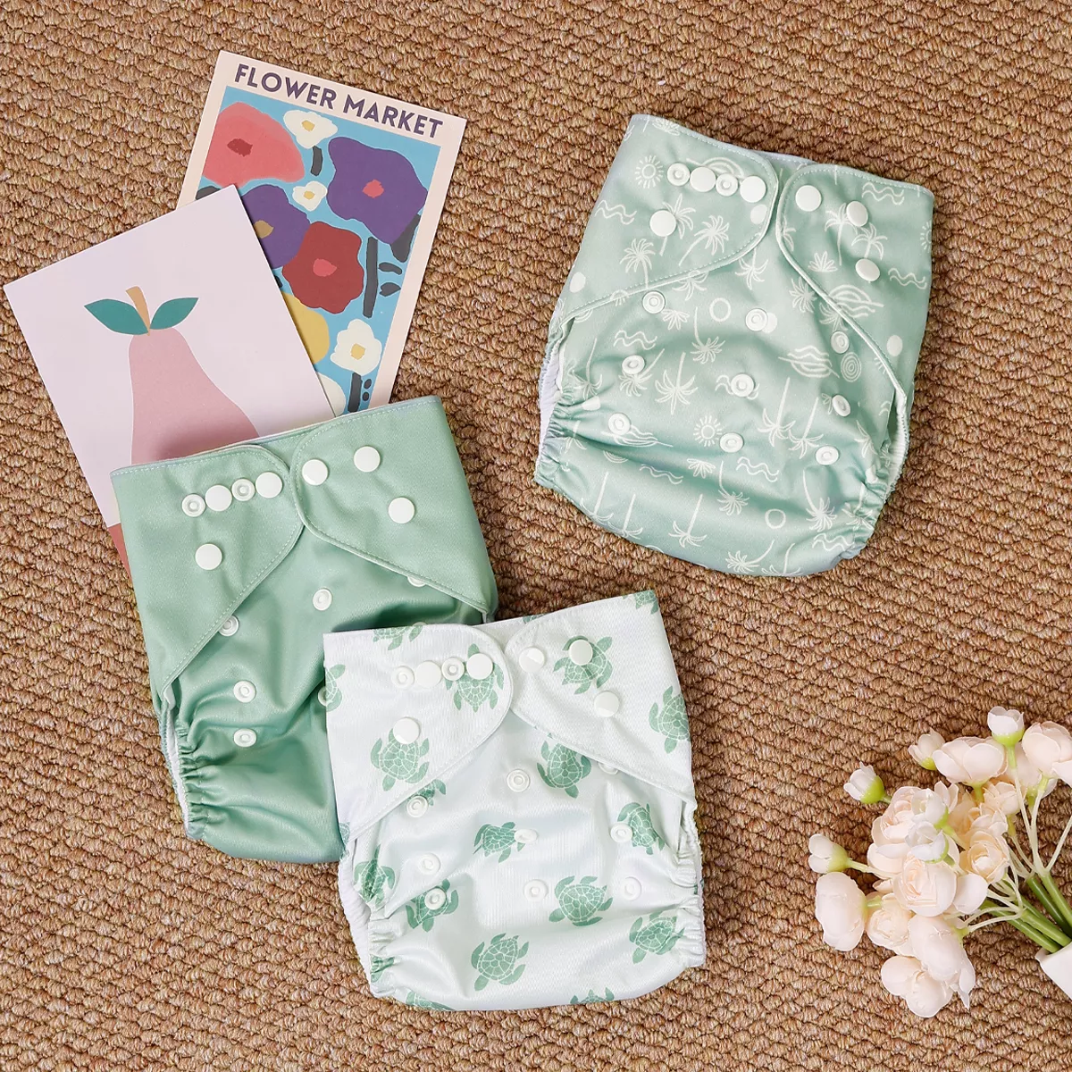 These diapers shine in both comfort and practicality. Unlike disposable diapers, this reusable set is gentle on the environment and your wallet. The adjustable design ensures a perfect fit during all stages of infancy, from newborn to 12 months. The waterproof layer protects clothing and bedding from leaks, while the breathable fabric helps prevent diaper rash and irritation.
