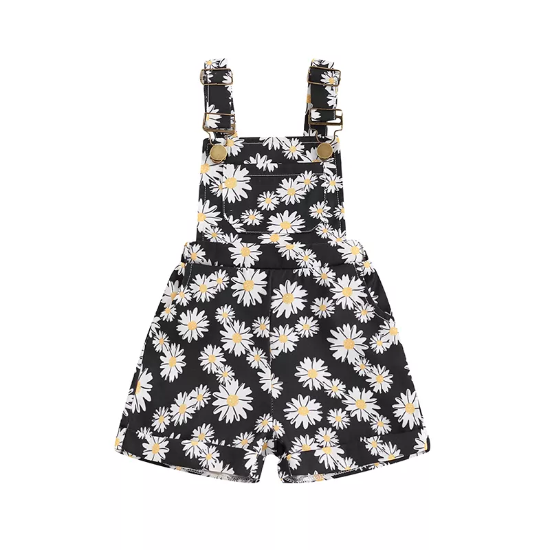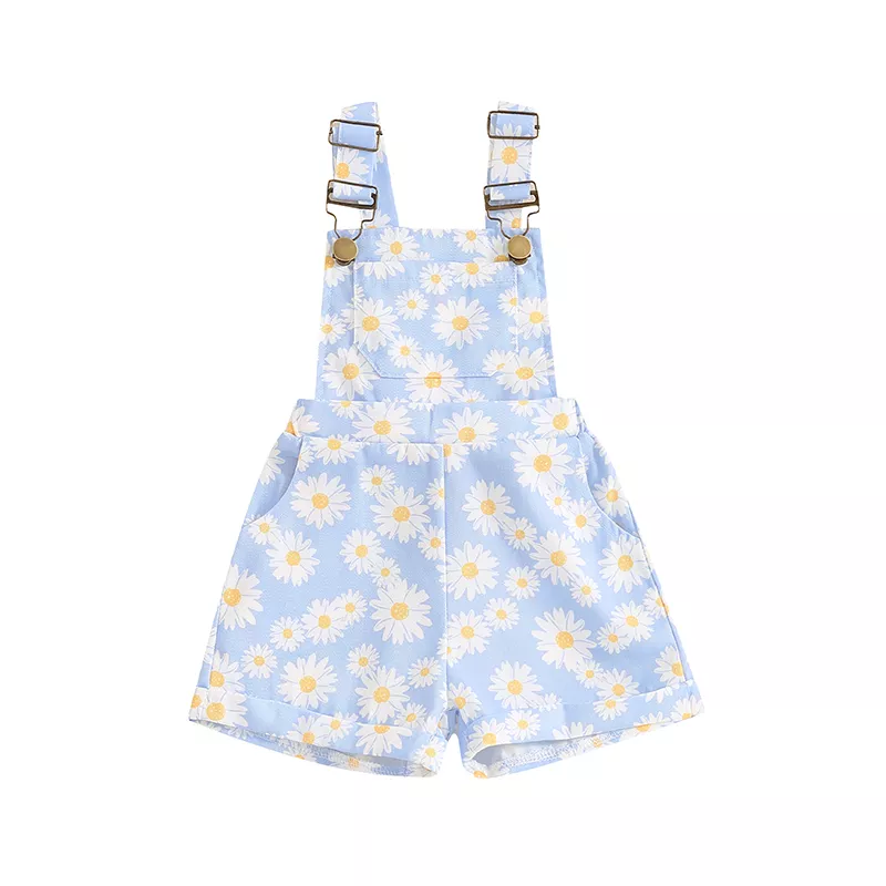 Baby Girl Daisy Print Summer Romper – Sleeveless Toddler Overall Shorts