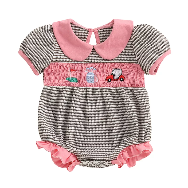 Baby Girl Striped Summer Romper with Golf Embroidery – Short Sleeve Bodysuit
