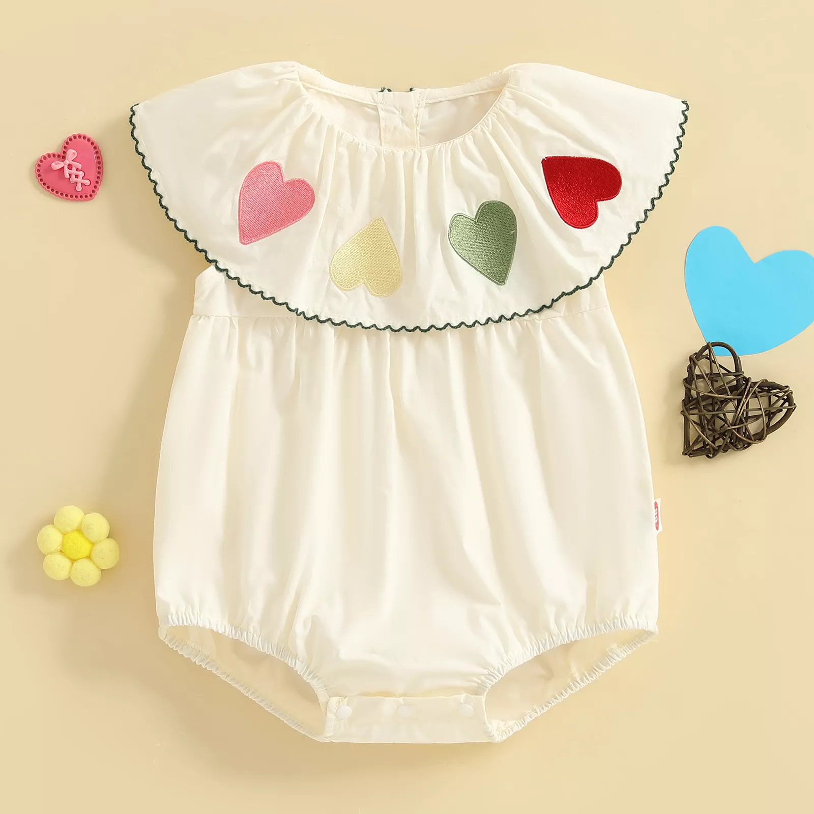 Keep your baby girl cool, comfy, and irresistibly cute this summer with our Baby Girl Sleeveless Bubble Romper. Designed with a charming heart embroidery and eye-catching black trim, this romper brings together sweet style and everyday comfort. The round neck and bubble silhouette make it perfect for playdates, family outings, or lounging at home.