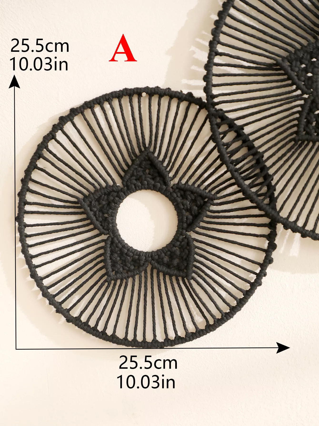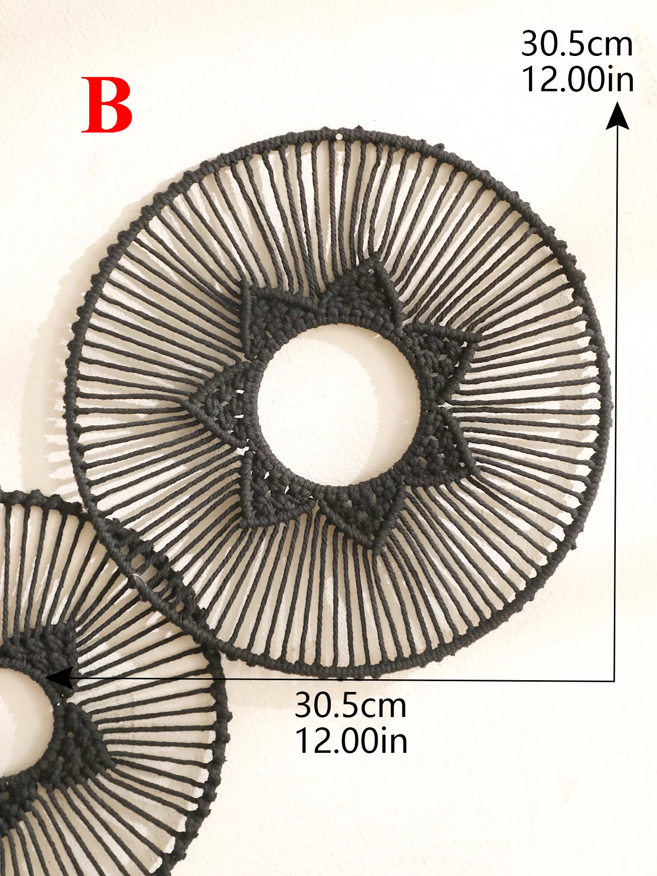 Crafted from 100% high-quality cotton cord, each piece is carefully handwoven with attention to detail. The soft, natural texture and intricate geometric design draw the eye and make it a versatile addition to your living room, bedroom, reading nook, or even outdoor spaces like patios and balconies. Measuring approximately 12 to 16 inches in diameter, it’s the perfect size for layering with other decor or standing alone as a bold focal point.