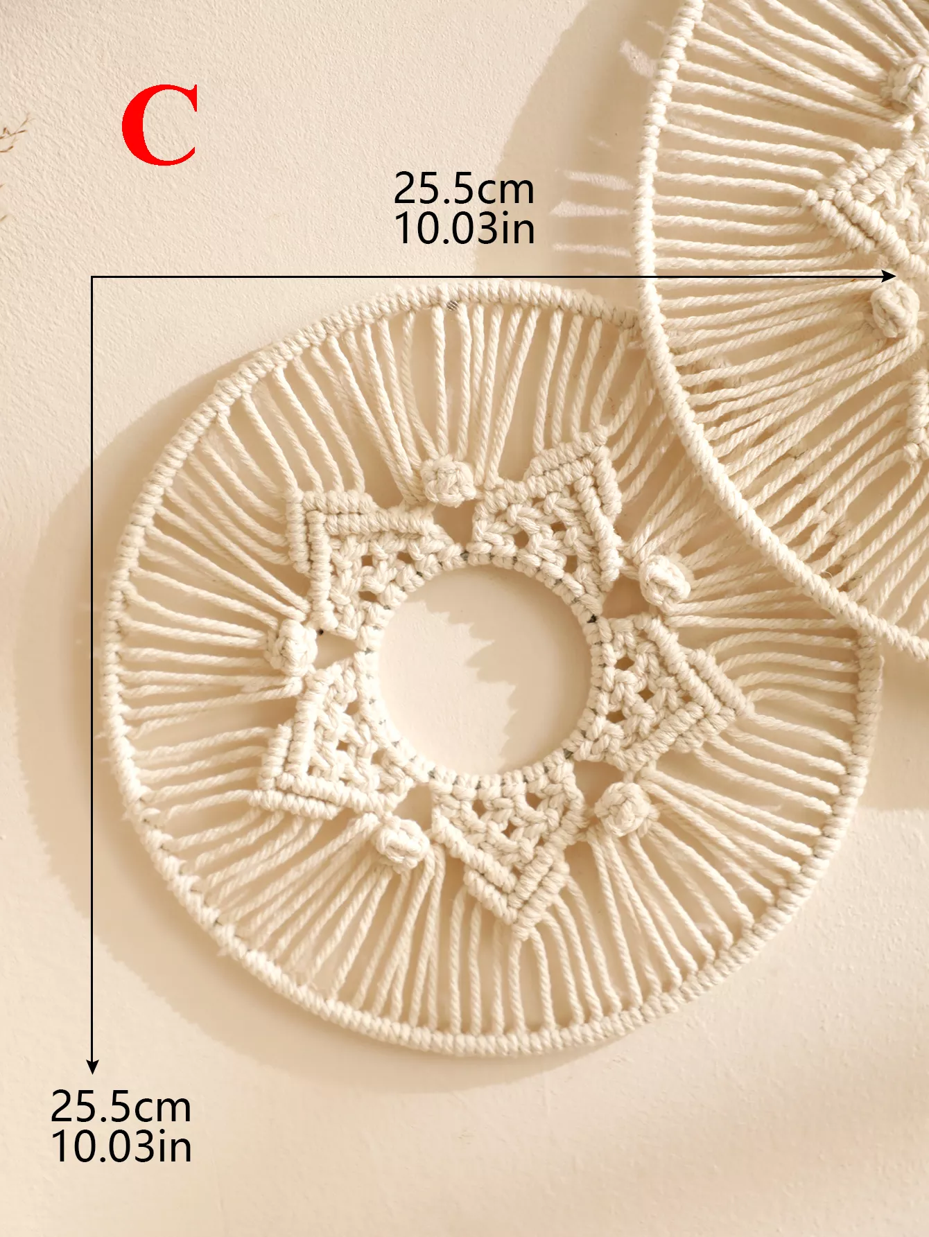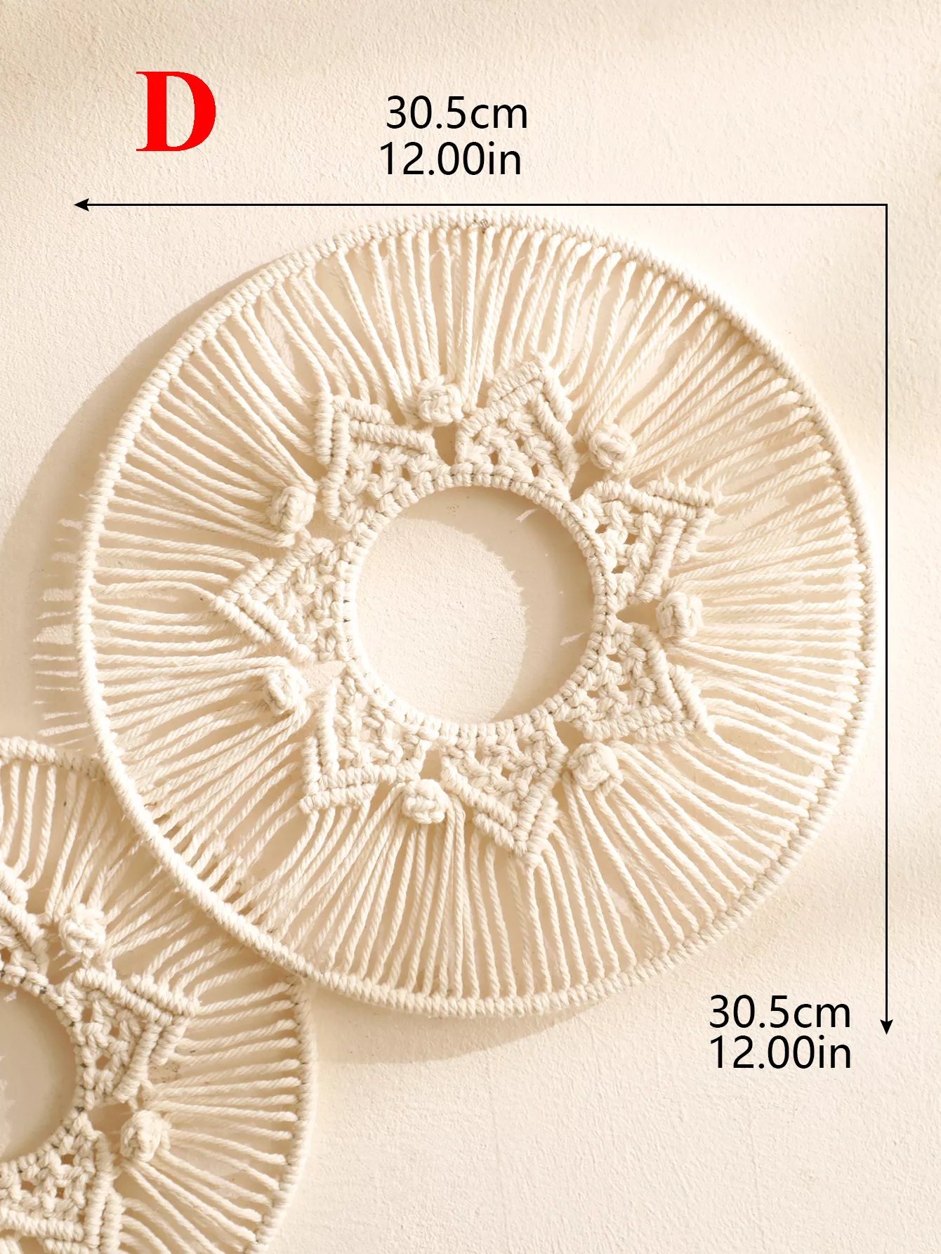 This macrame tapestry is ideal for all seasons and suits a variety of settings. It works beautifully as a piece of living room art, an accent for your office desk, a boho nursery touch, or as a gentle backdrop for your meditation or yoga space. It also doubles as a lovely base for candles, vases, or potted plants—adding versatility and function beyond the wall.