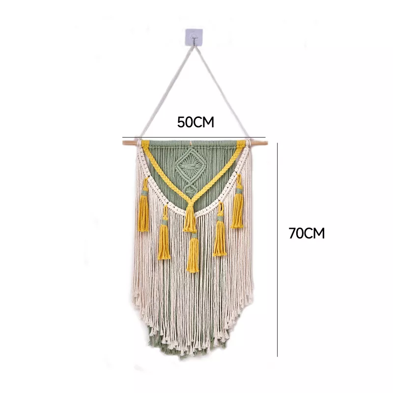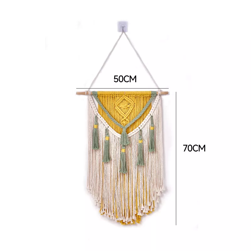 Handcrafted from a high-quality blend of cotton and polyester, this macrame wall hanging showcases intricate woven patterns and delicate tassels that bring a sense of calm and creativity into your space. The minimalist geometric design adds just the right balance of texture and visual appeal, making it a versatile decor piece for a variety of interior styles—be it bohemian, contemporary, or even rustic.