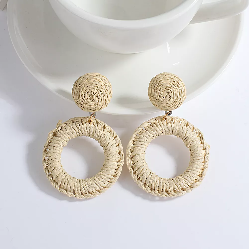 These drop earrings are carefully made using natural rattan fibers and finished with a durable zinc alloy hook. Their handcrafted nature means each piece has its own subtle variations, giving your jewelry a unique, artisanal feel. The open circle design adds balance and simplicity while keeping things stylishly bold. Measuring approximately 2.3 inches in total length, they’re just the right size to make a statement without feeling heavy.