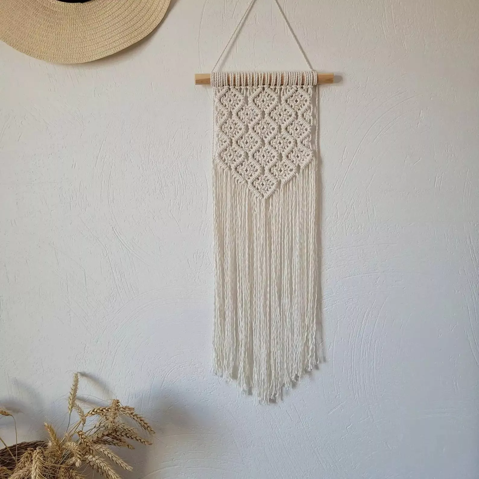 This macrame tapestry combines elegant simplicity with geometric inspiration, making it the perfect accent for modern boho interiors. Its long, soft fringe and delicate knot work create a textured focal point that adds warmth, depth, and character to your decor. Whether you’re decorating your home or looking for the perfect housewarming or birthday gift, this wall hanging is both meaningful and stylish.