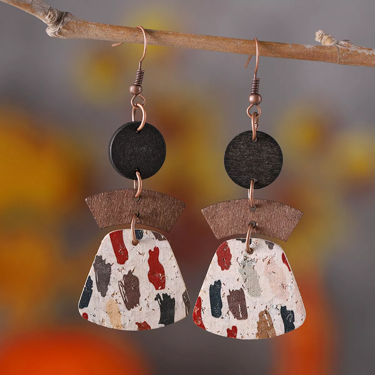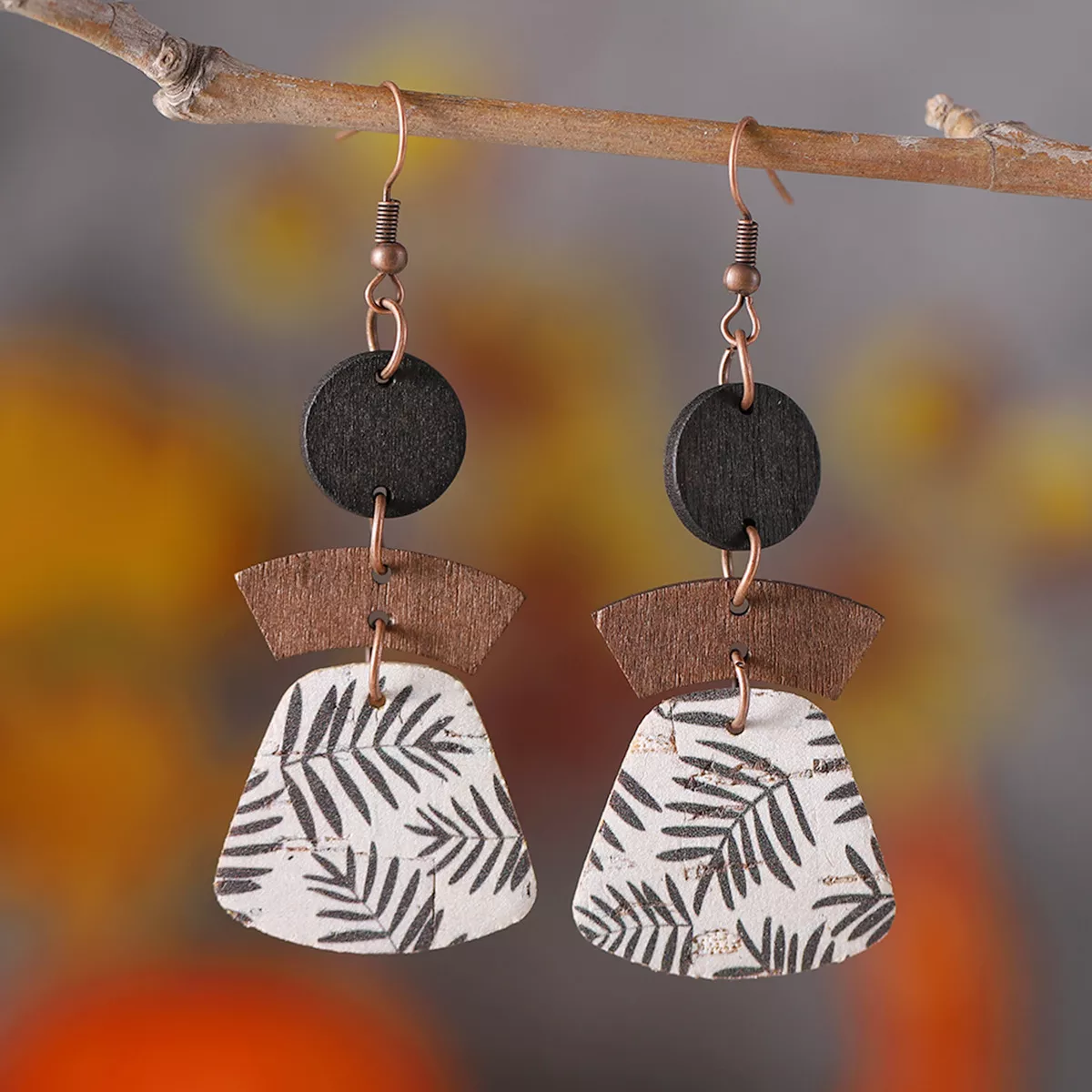 Step into the world of effortless style and artistic charm with these stunning Boho Stripe Drop Earrings. Perfectly blending vintage vibes with modern elegance, these earrings are designed for women who love to stand out. With their painted stripe pattern, wooden and leather splicing detail, and geometric drop shape, these earrings capture the essence of vacation freedom and everyday fashion.