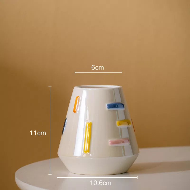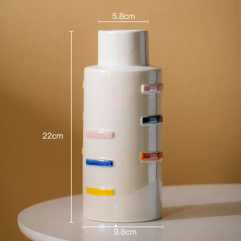 Brighten your home with the vibrant charm of the Ceramic Striped Vase – a handcrafted centerpiece that transforms ordinary spaces into elegant retreats. Featuring a playful mix of colorful stripes and a sleek modern shape, this tabletop vase is the perfect blend of creativity and contemporary design. Whether placed in your living room, dining area, or entryway, it instantly adds character and warmth to your interior décor.