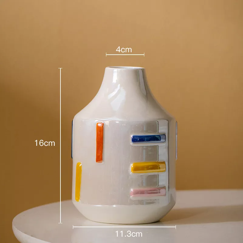 This ceramic vase is perfect for every season and occasion. Use it to display fresh blooms in spring, dried flowers in fall, or let it shine on its own all year round. Its compact size makes it easy to style in smaller spaces, while the bold colors create a lively focal point that draws the eye.
