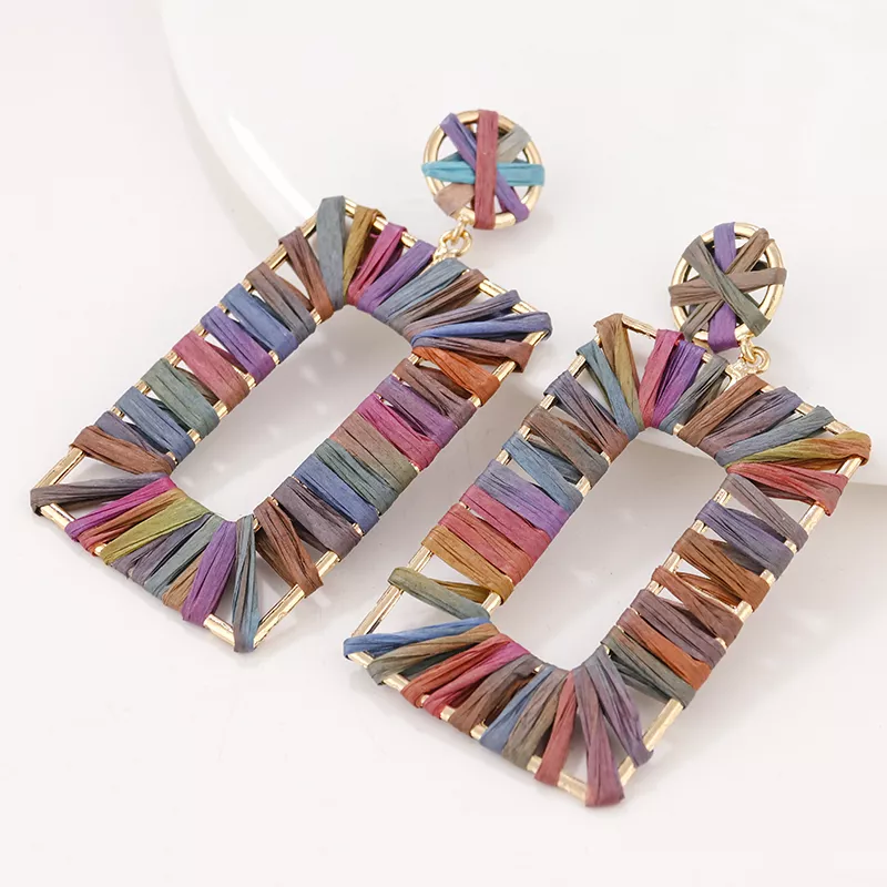The vibrant woven design brings a playful yet chic touch to any wardrobe. Their lightweight construction ensures all-day comfort, while the striking square shape adds a modern, trendy edge. These earrings are the perfect mix of statement and simplicity—eye-catching without being overwhelming. Wear them with flowing dresses, straw hats, or even casual jeans and a white tee to instantly elevate your summer look.