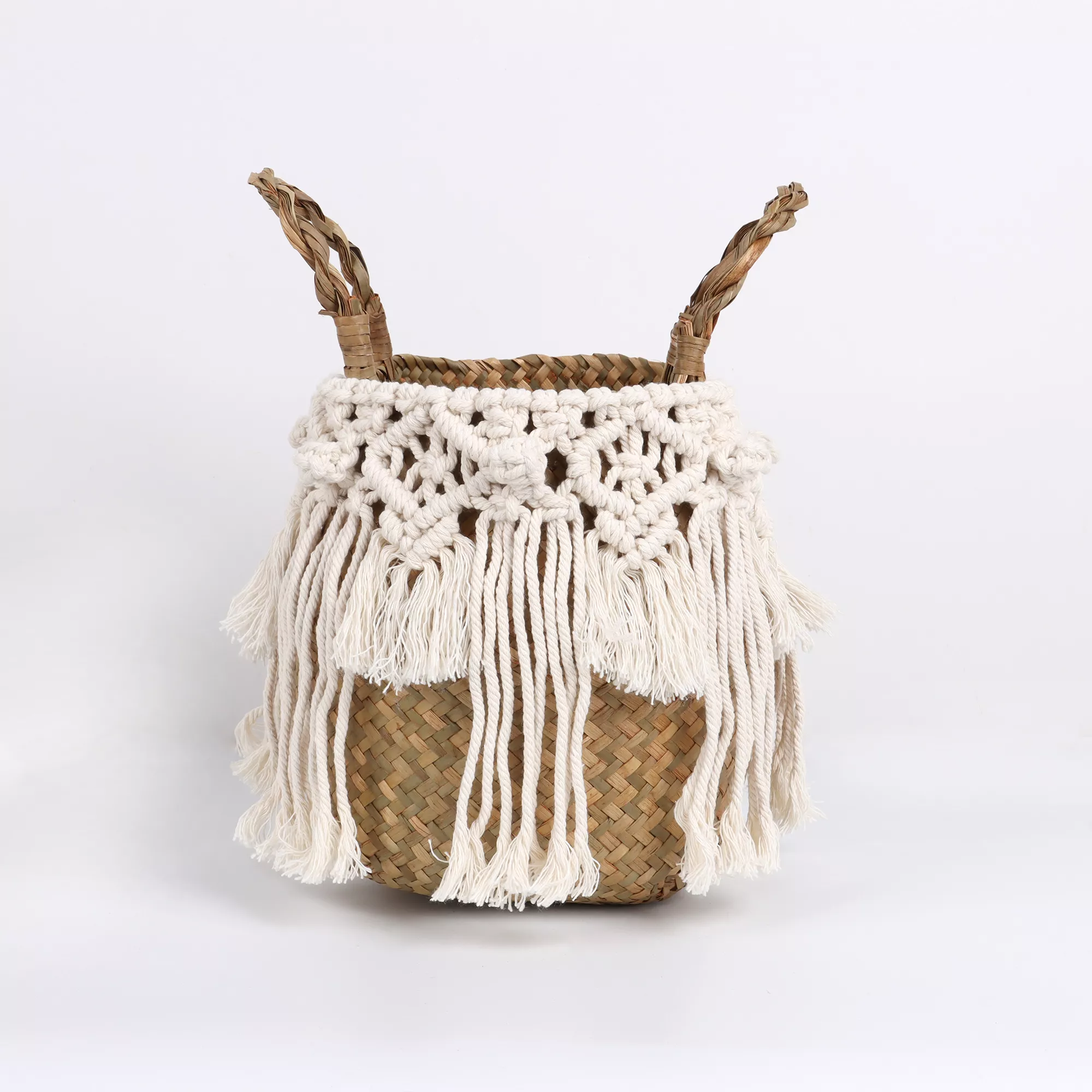 Whether you’re styling a cozy bedroom, a chic bohemian living room, or organizing a garden space, this basket brings natural beauty and practical design together in perfect harmony. The open weave allows your items to breathe, while the macrame tassel adds a decorative flourish that suits modern, farmhouse, or boho aesthetics.