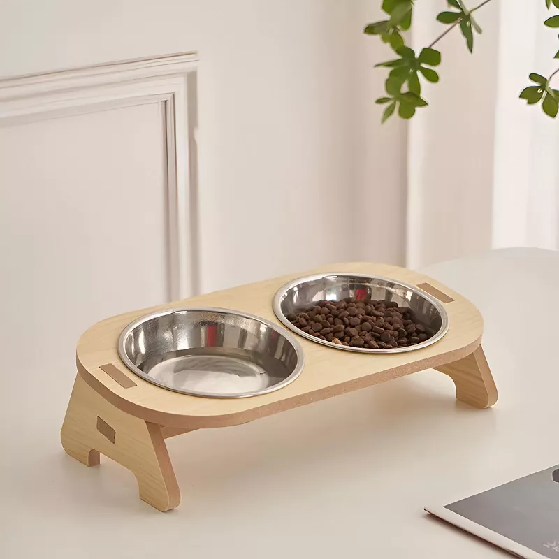 This double bowl set includes two stainless steel dishes securely seated in a durable wooden stand. The stand’s anti-tip design keeps everything steady—even with enthusiastic eaters. The square shape and neutral wood tone blend easily with any home décor, making it just as stylish as it is practical. Whether placed in your kitchen, hallway, or living room, this feeder keeps your pet’s dining area clean and organized.