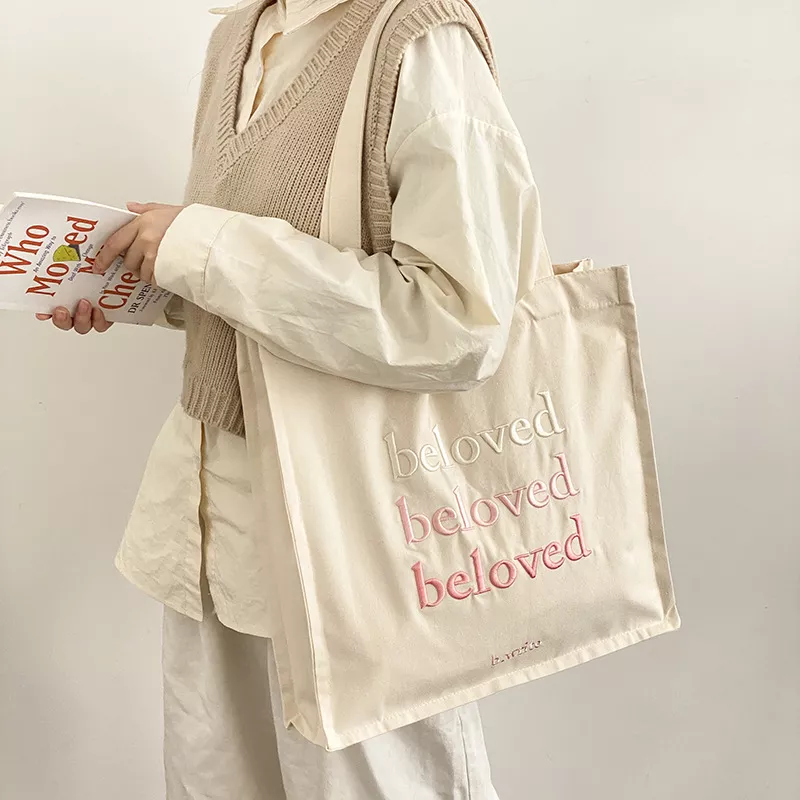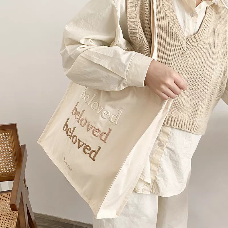 Make your everyday style effortlessly elegant with this Embroidered Canvas Tote Bag – a beautiful and practical piece designed for modern women who love a soft, relaxed look with thoughtful details. Crafted from thick cotton canvas, this tote features delicate “Beloved” embroidery that adds a heartfelt touch to its minimalist design. It’s more than just a bag – it’s a blend of comfort, purpose, and personal style.