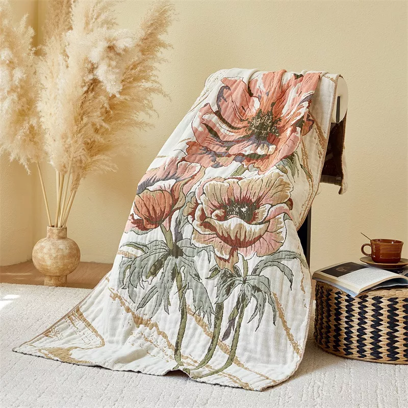 Floral Cotton Gauze Bath Towel – 4-Layer, Quick-Dry, Soft & Stylish