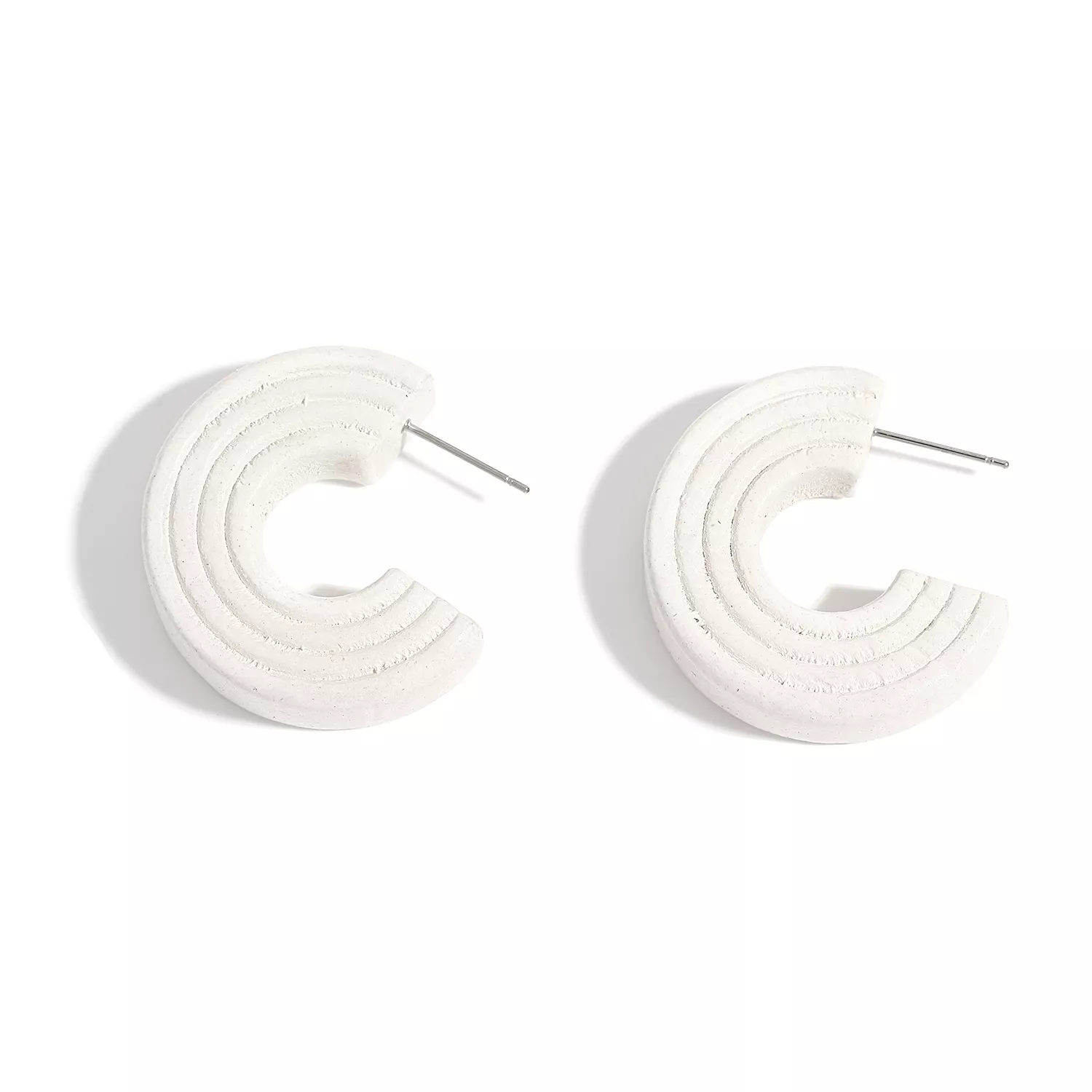 Each pair is carefully crafted from high-quality wood and finished with a zinc alloy metal post, creating a lightweight yet durable design that’s comfortable to wear all day. Measuring approximately 1.18 inches in length and 0.31 inches in width, these small-sized hoops are perfect for women who love minimal yet striking jewelry. Available in versatile shades of Black, White, and Brown, they easily complement any outfit – from boho chic to office casual.