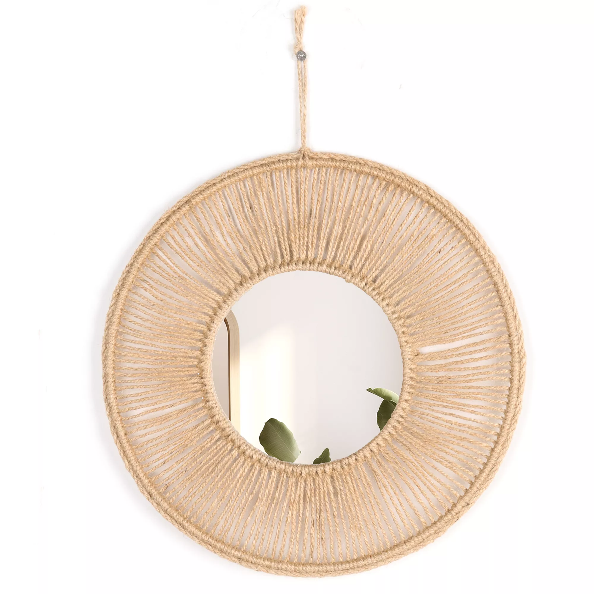 Made with natural hemp rope and durable acrylic, this decorative mirror brings together earthy textures and practical materials for a balanced, stylish look. The handwoven rope frame exudes a relaxed, coastal vibe, making it ideal for spaces that embrace boho, rustic, farmhouse, or nautical themes. With a unique circular shape and natural tones, it serves as both a functional mirror and a captivating piece of wall art.