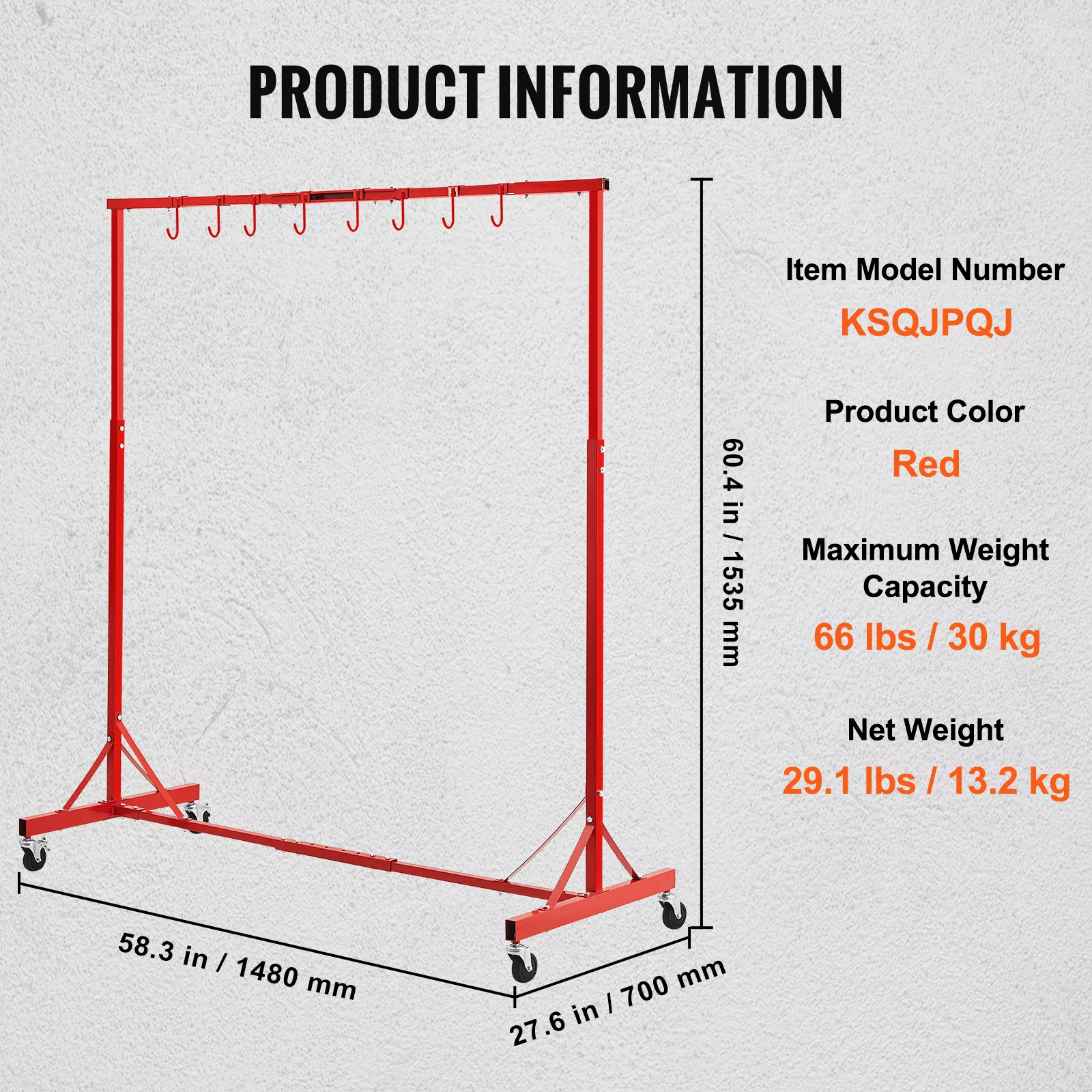 • Sturdy Adjustable Hooks: Equipped with 8 hooks (2 large, 6 small), this rack can hold up to 66 lbs (30 kg) of car parts for painting and drying. Easily adjust the hooks to accommodate various sizes of parts, making it perfect for any project.
