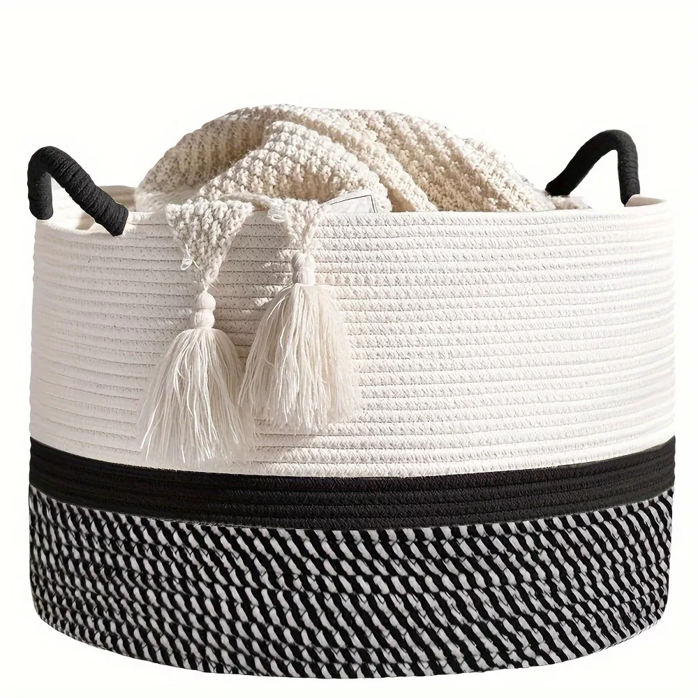 Use it in winter to corral cozy throws by the fireplace, or in summer to store beach towels and seasonal gear. It’s your go-to for a clutter-free space all year round. Whether you’re a home décor lover or just need practical storage, this woven cotton basket makes organizing feel effortless and stylish.