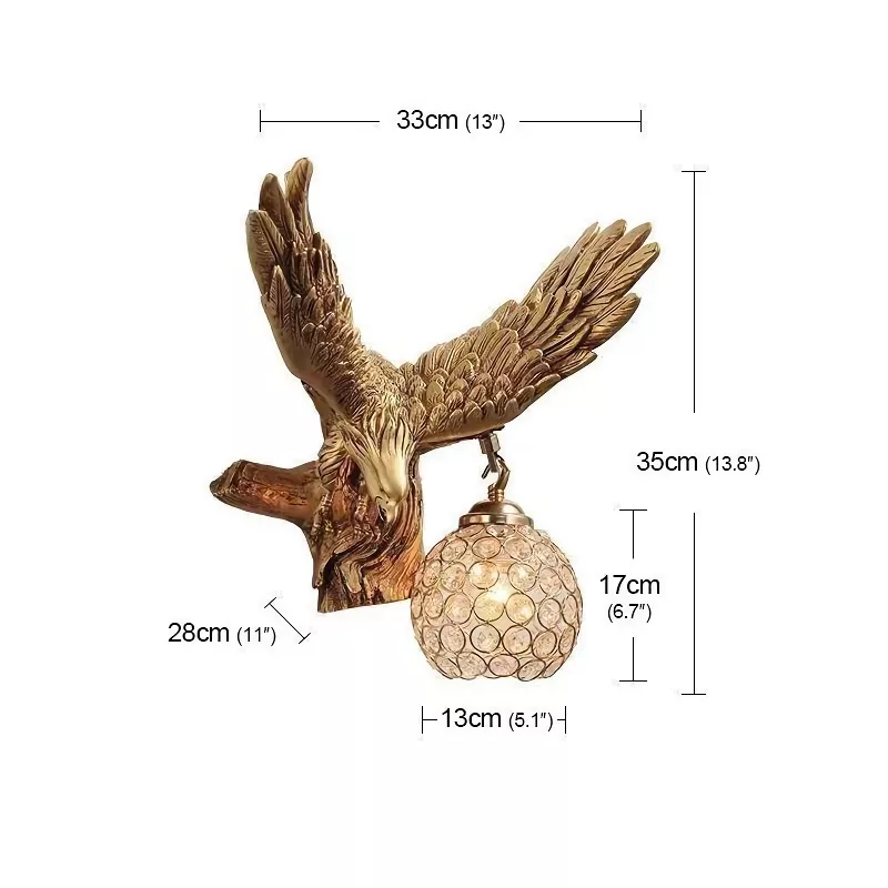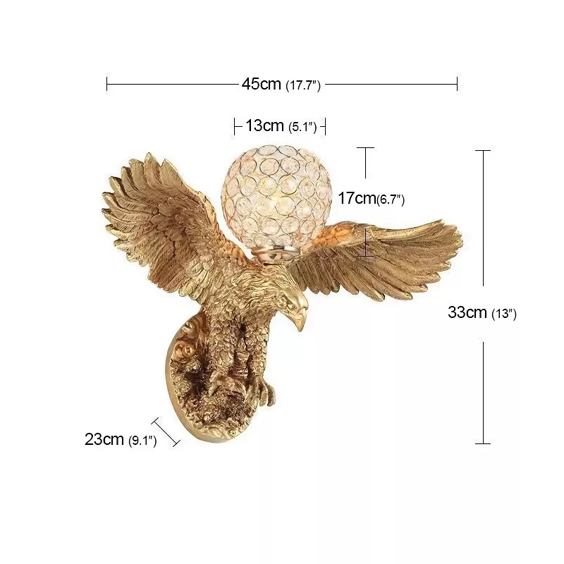 Our Modern Gold Eagle Wall Lamp is best used in environments where both style and function are valued. It’s perfect for anyone looking to enhance their home’s ambiance or add a decorative touch to their living space. Utilize it in your bedroom for a soft bedside light, or in your living room or hallway to create a welcoming atmosphere for guests.
