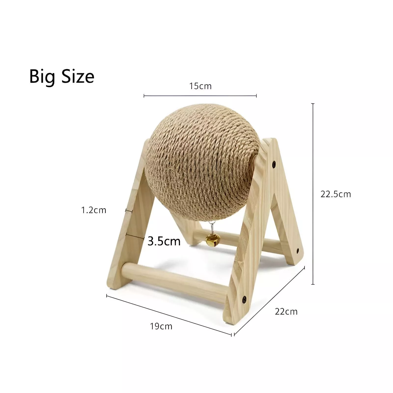 Whether your pets love to bat, chase, nibble, or scratch, this toy does it all. Its clever triangular wooden frame holds the sisal-wrapped ball in place for hours of entertainment. Best used during active playtimes or when your pet needs a little solo enrichment, this toy helps reduce boredom and stress — all while naturally trimming their claws. Say goodbye to scratched furniture and hello to a happy, healthy pet.