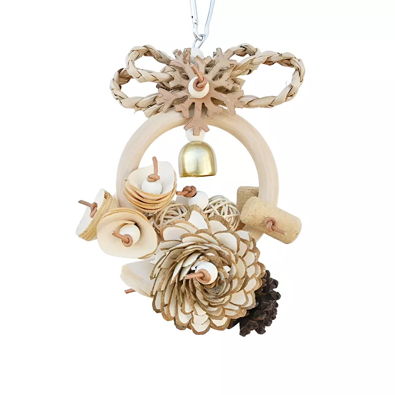 Bring the natural world to your bird’s cage with our Natural Plant and Wood Chew Ring Toy, specially designed to satisfy your parrot’s chewing instincts while encouraging healthy play. Crafted from a variety of bird-safe, eco-friendly materials—like wood chips, straw, pine cones, dried flowers, and natural grasses—this chew toy provides hours of enrichment and entertainment for parrots and other curious birds.