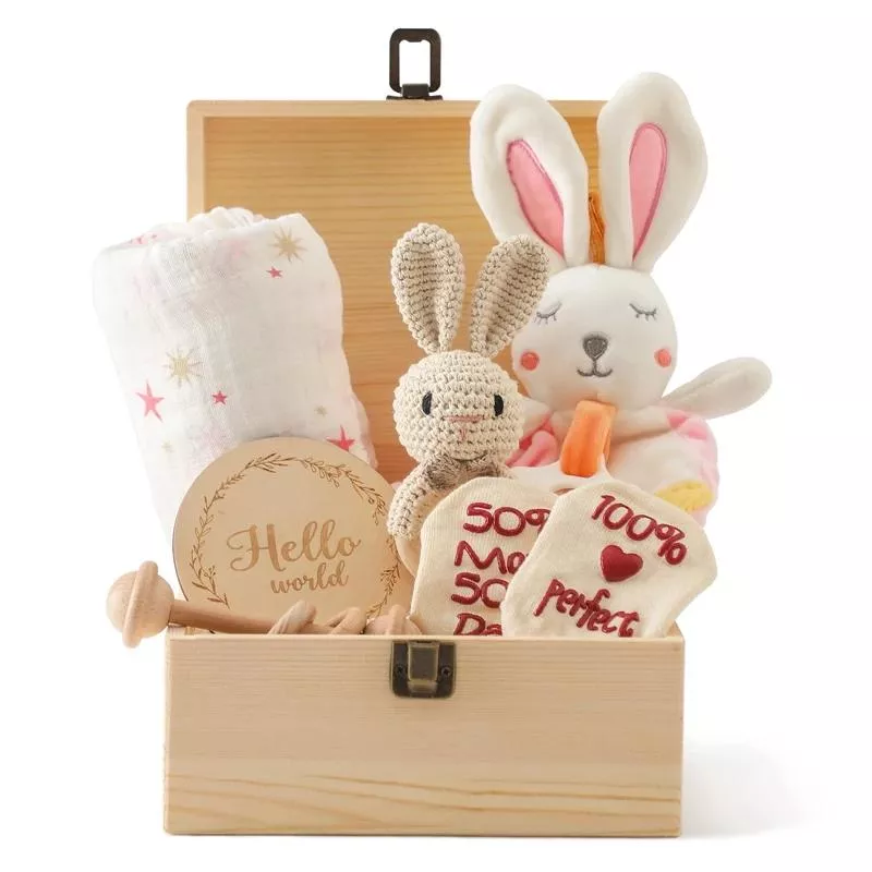 Welcome the arrival of a precious little one with this charming newborn baby gift set, curated to delight both baby and parents. Packed with essential and adorable items, this beautifully boxed set includes everything from soft baby towels to a gentle wool brush—each piece chosen to offer comfort, play, and sweet memories from the very start. Whether you’re celebrating a baby shower, a first birthday, or simply sending your love, this gift box makes a heartfelt impression.