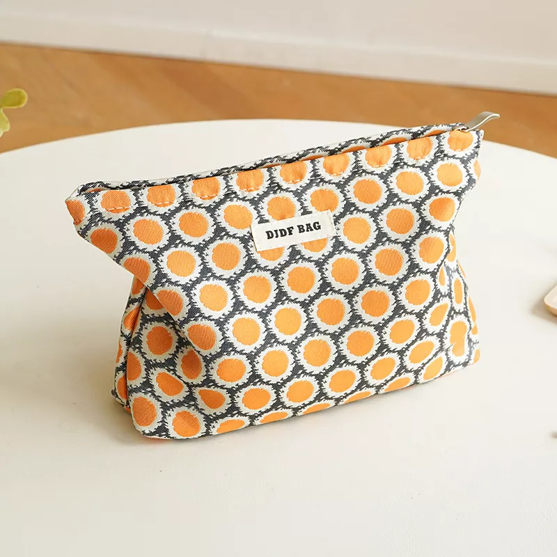Brighten up your beauty routine with this delightful Orange Polka Dot Travel Cosmetic Bag. Designed for the woman on the go, this stylish small pouch effortlessly combines function with flair. Whether you’re jetting off on a weekend getaway, heading to the gym, or organizing your essentials at home, this travel clutch is your new must-have companion.