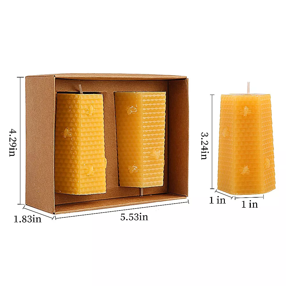Measuring approximately 1.65 x 3.15 inches and weighing around 4.2 oz, each pillar candle is carefully molded into a unique hexagonal structure that mirrors the natural beauty of a honeycomb. The texture and shape make it not only a candle, but also a stunning decor piece. Thanks to its high-quality beeswax composition, it burns longer, steadier, and cleaner than regular candles—without any added scents or chemicals.