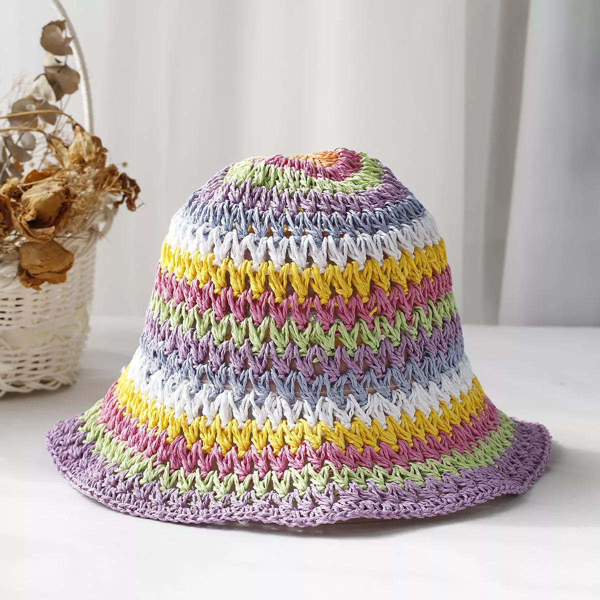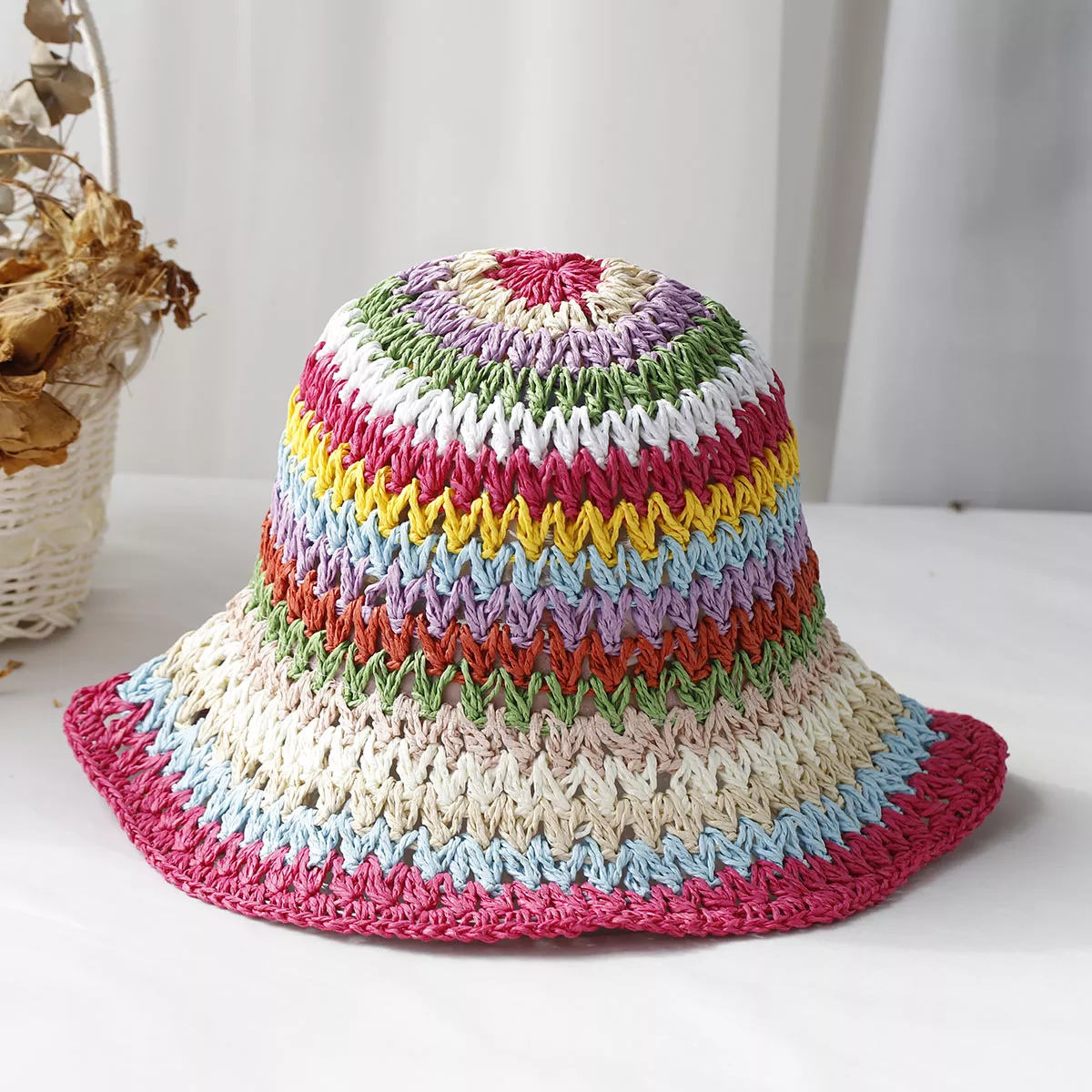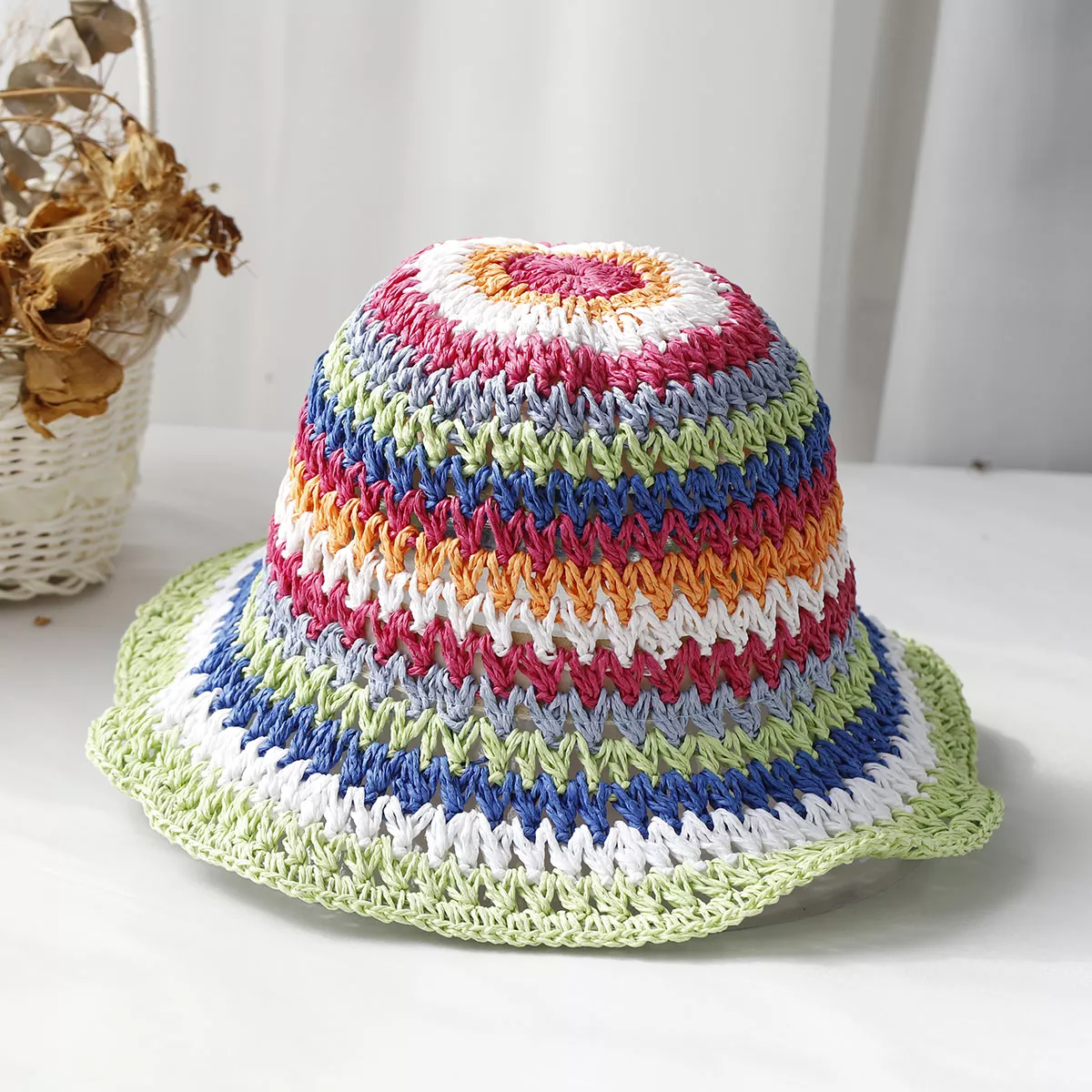 Rainbow Woven Women’s Straw Sun Hat – Breathable, Protective Summer Hat