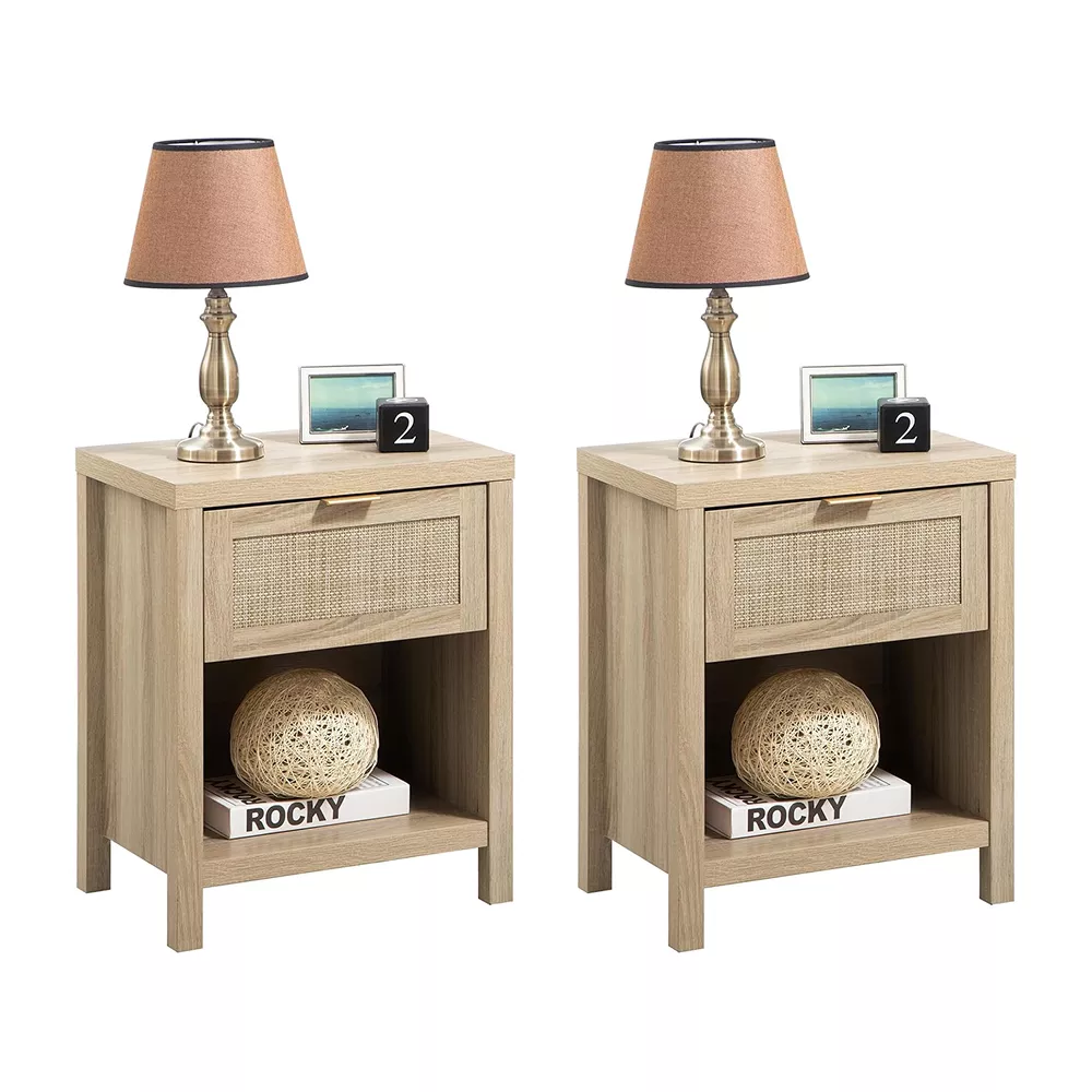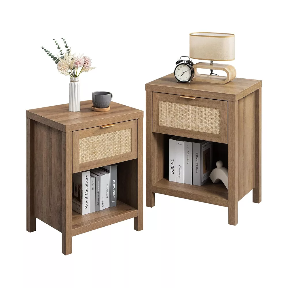 This nightstand is made from thickened engineered wood, offering solid stability and durability you can rely on. The drawer front is styled with realistic rattan patterns made of durable plastic—giving you the charm of woven texture without the hassle of upkeep. The open shelf below allows easy access to your books, electronics, or décor, while the drawer keeps personal items neatly tucked away.