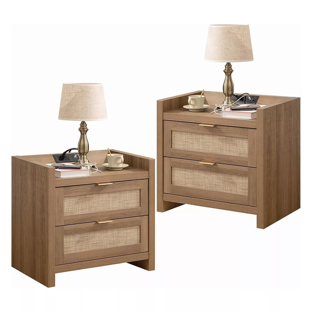 Upgrade your bedroom or living space with the perfect blend of charm and function—our Rattan Nightstand with Type-C Charging Station. This multifunctional bedside table features a sleek wood finish with warm oak tones and elegant rattan-style drawer fronts that add a natural, boho-inspired touch to any décor. With built-in power and smart organization, it’s made for today’s lifestyle—compact, convenient, and full of character.