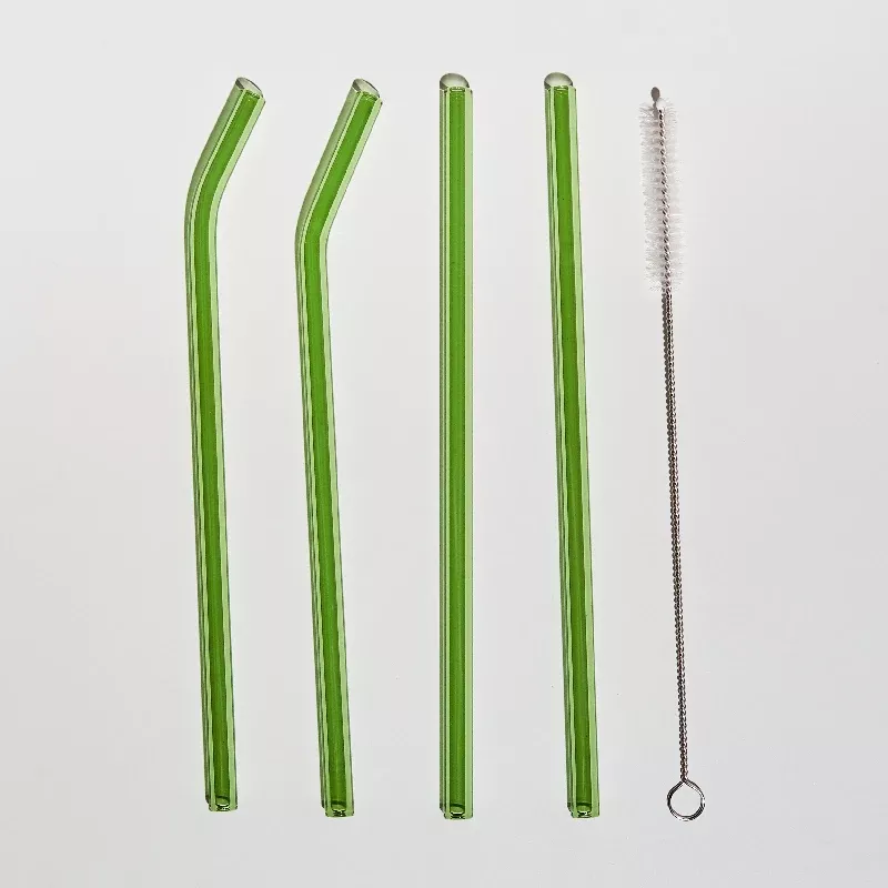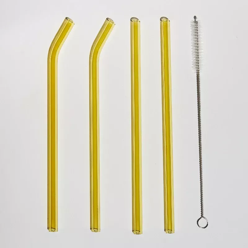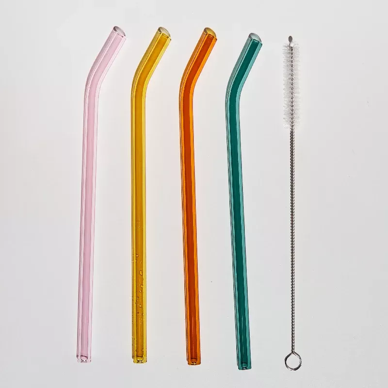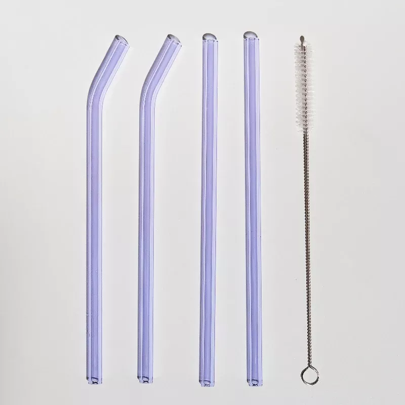 Each set includes 4 sleek, handcrafted glass straws in a mix of eye-catching colors, along with a convenient cleaning brush to keep them fresh and ready to use. At 7.5 inches long with an 8mm diameter, these straws are ideal for everything from smoothies and milkshakes to bubble tea and cocktails. Their stylish colors—ranging from soft lilac and jade to elegant gold and black—add a pop of personality to your drinkware collection.