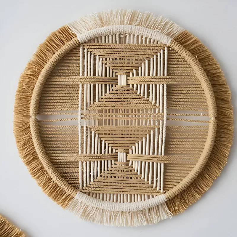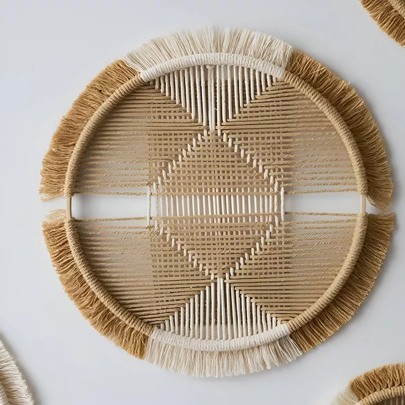 Unlike mass-produced wall art, this piece carries the charm of handcrafted design. The mandala detail is woven with care, symbolizing balance and harmony. The round shape and natural bamboo frame make it stand out without overwhelming your space. It’s the perfect blend of structure and softness—a little piece of serenity for your walls.