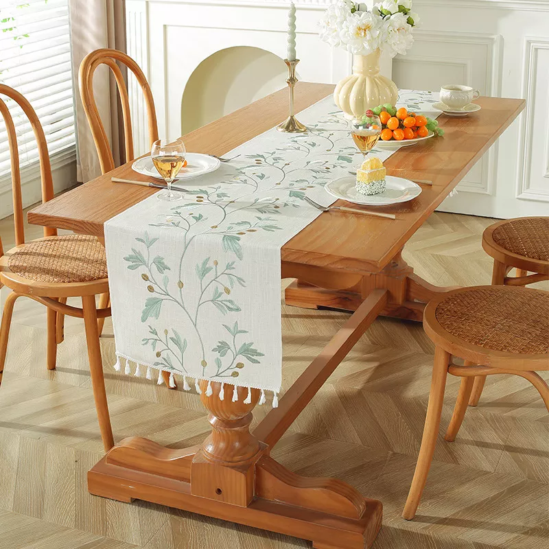 Use it for holiday dinners, backyard garden parties, cozy brunches, or even as a wedding décor accent — this table runner fits seamlessly into any setting. Its natural tones and delicate floral motif make it an effortless way to add texture and style without overwhelming your space. Whether you’re refreshing your dining room or preparing for a celebration, this embroidered table runner is the piece that ties it all together.