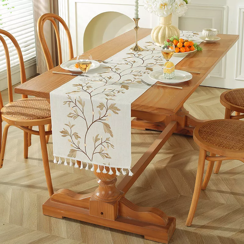 Enhance the charm of your home with our Rustic Embroidered Cotton Linen Table Runner featuring a graceful willow leaf design. Inspired by the beauty of the natural world, this table runner blends rustic appeal with a touch of elegance to create a warm and welcoming ambiance. Whether you’re hosting a cozy family dinner, a festive holiday gathering, or an unforgettable wedding celebration, this table runner makes the perfect centerpiece for your table décor.
