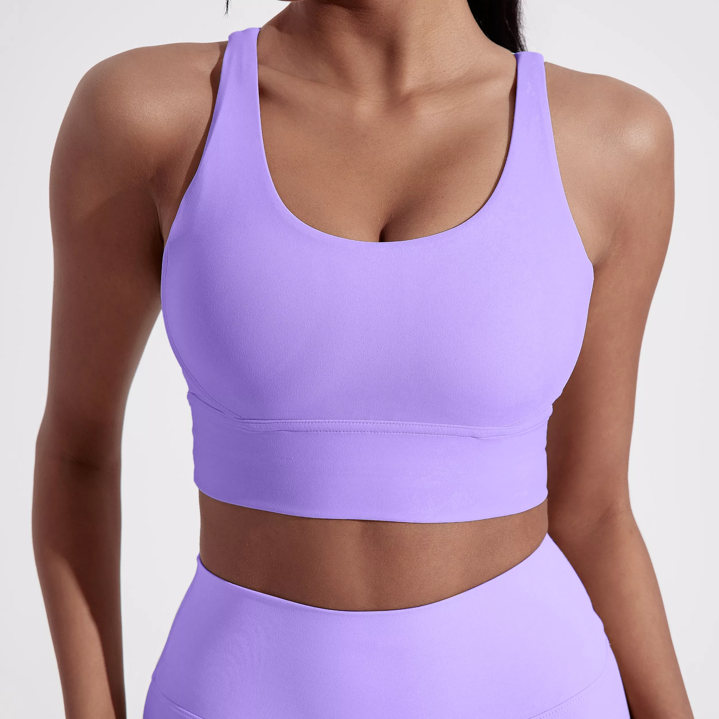 Made with a high-quality blend of nylon and spandex, this sports bra offers excellent elasticity, breathability, and moisture-wicking power. The built-in chest pad provides comfortable shaping and added coverage. With its shockproof structure, it minimizes bounce even during high-impact activities, helping you stay focused on your workout. The fabric is soft, quick-drying, and gentle on skin, perfect for long training sessions or everyday wear.