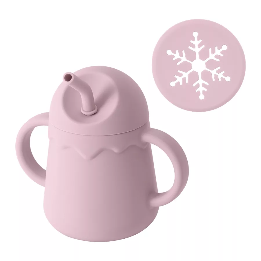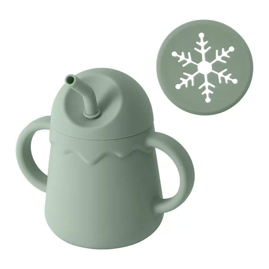 Silicone Baby Sippy Cup with Double Lids and Handles